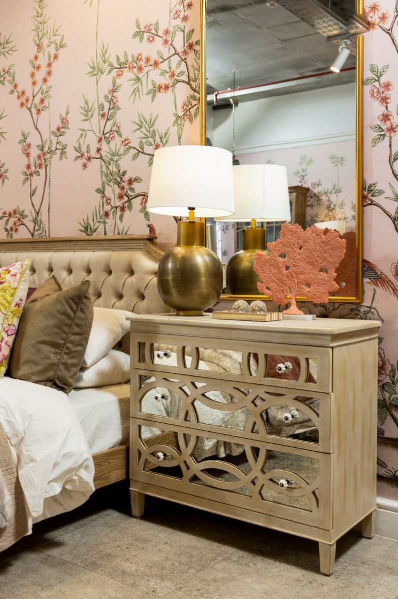 Add statement-making style to your favourite aesthetic with our Château Aloin pieces, defined by its antique mirror panels and geometric wooden fretwork. These mirrored furniture pieces are the perfect way to infuse a little glam into any look and add the illusion of extra space into rooms large or small.