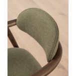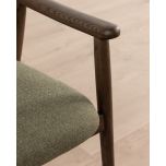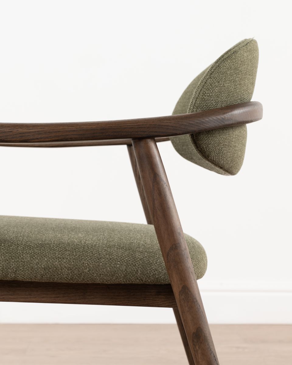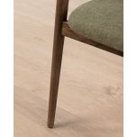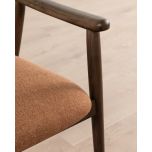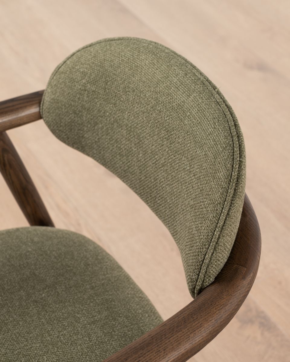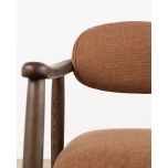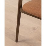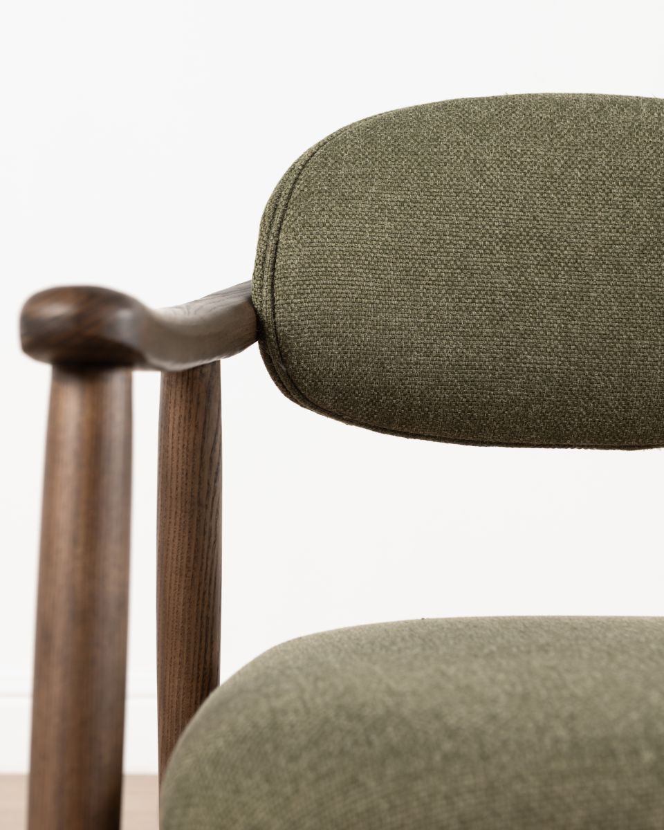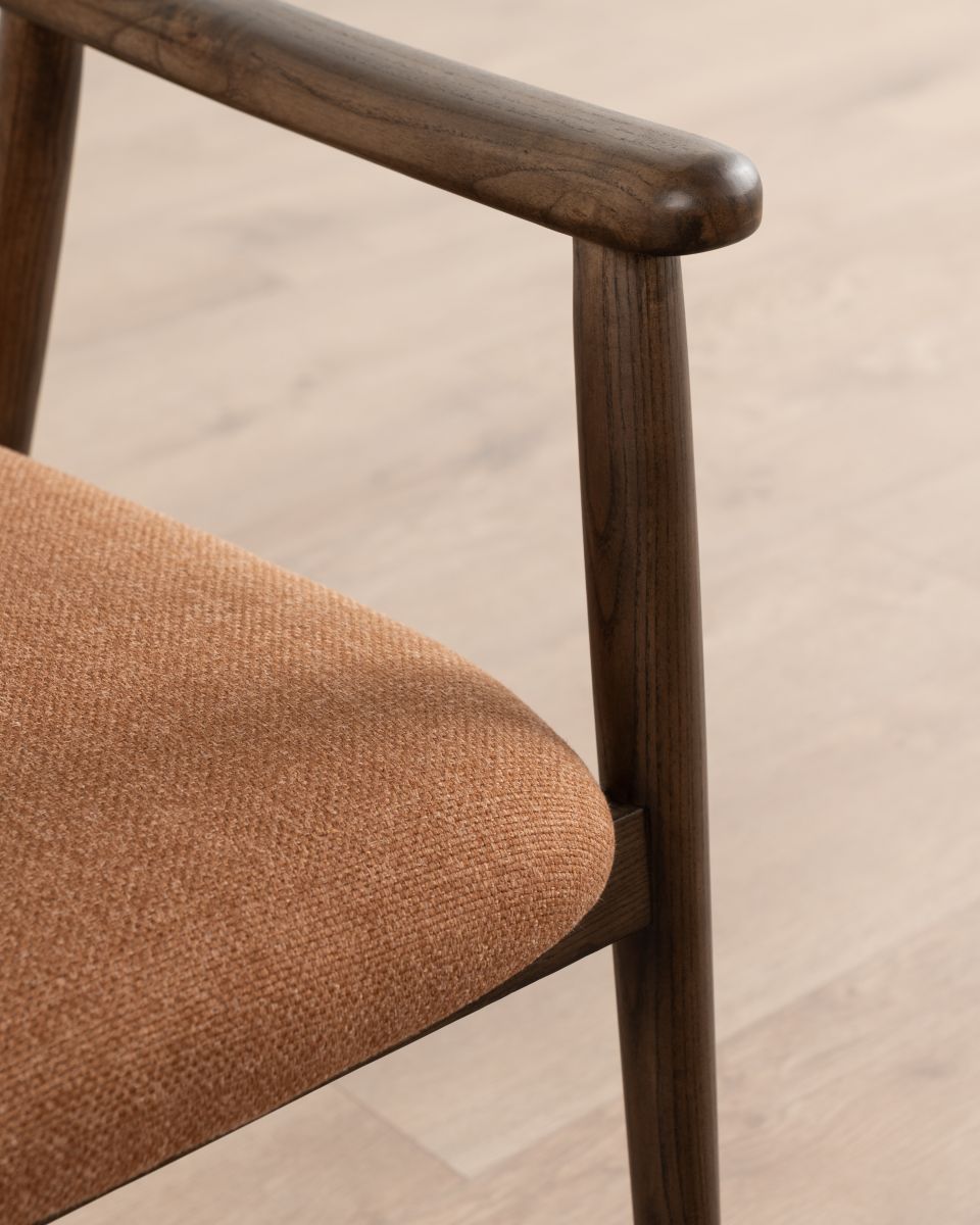 Blending mid-century elegance with modern comfort, the Astoria Dining Chair from our Ebony Collection is ideal for everyday dining and special occasions. Its sturdy frame is crafted from solid ash wood, showcasing the natural grain patterns in a warm finish. The gently curved backrest and sleek armrests create an inviting silhouette, while the tapered legs provide a light and refined look. The seat and backrest are upholstered in durable fabric for easy maintenance and provide plush, padded comfort.