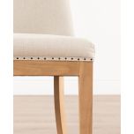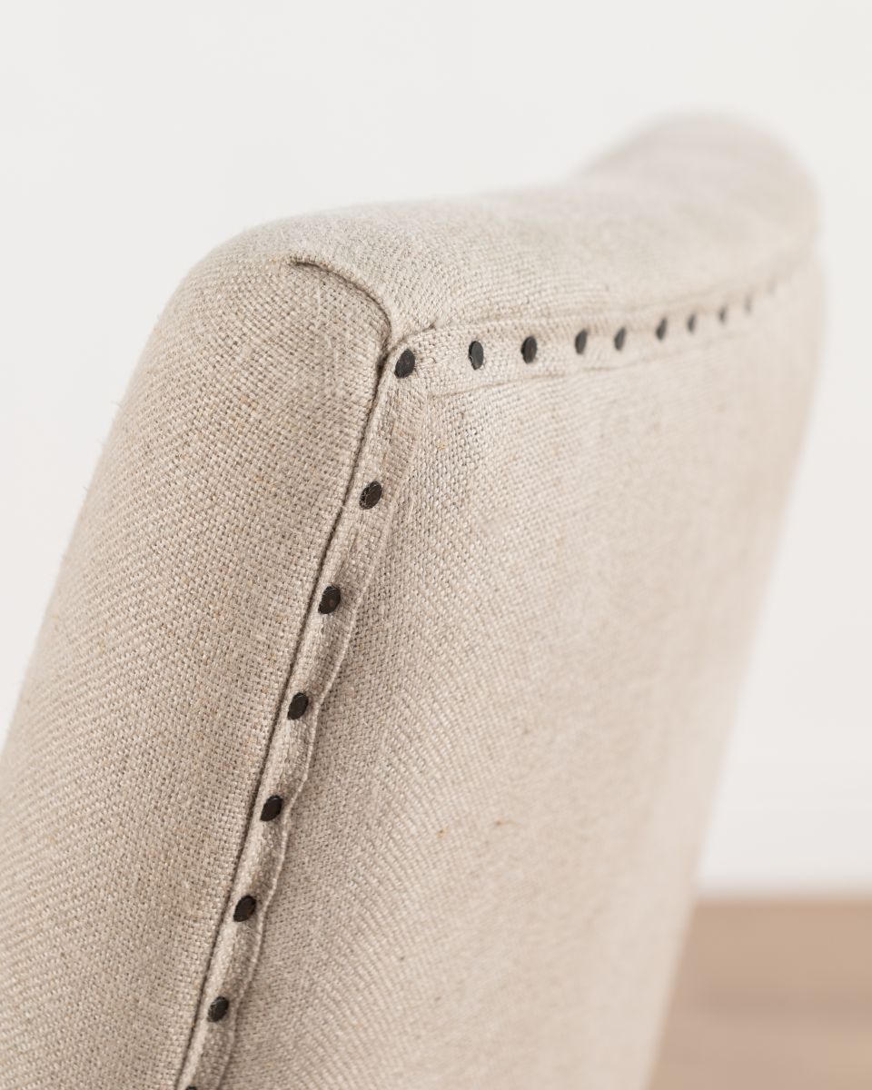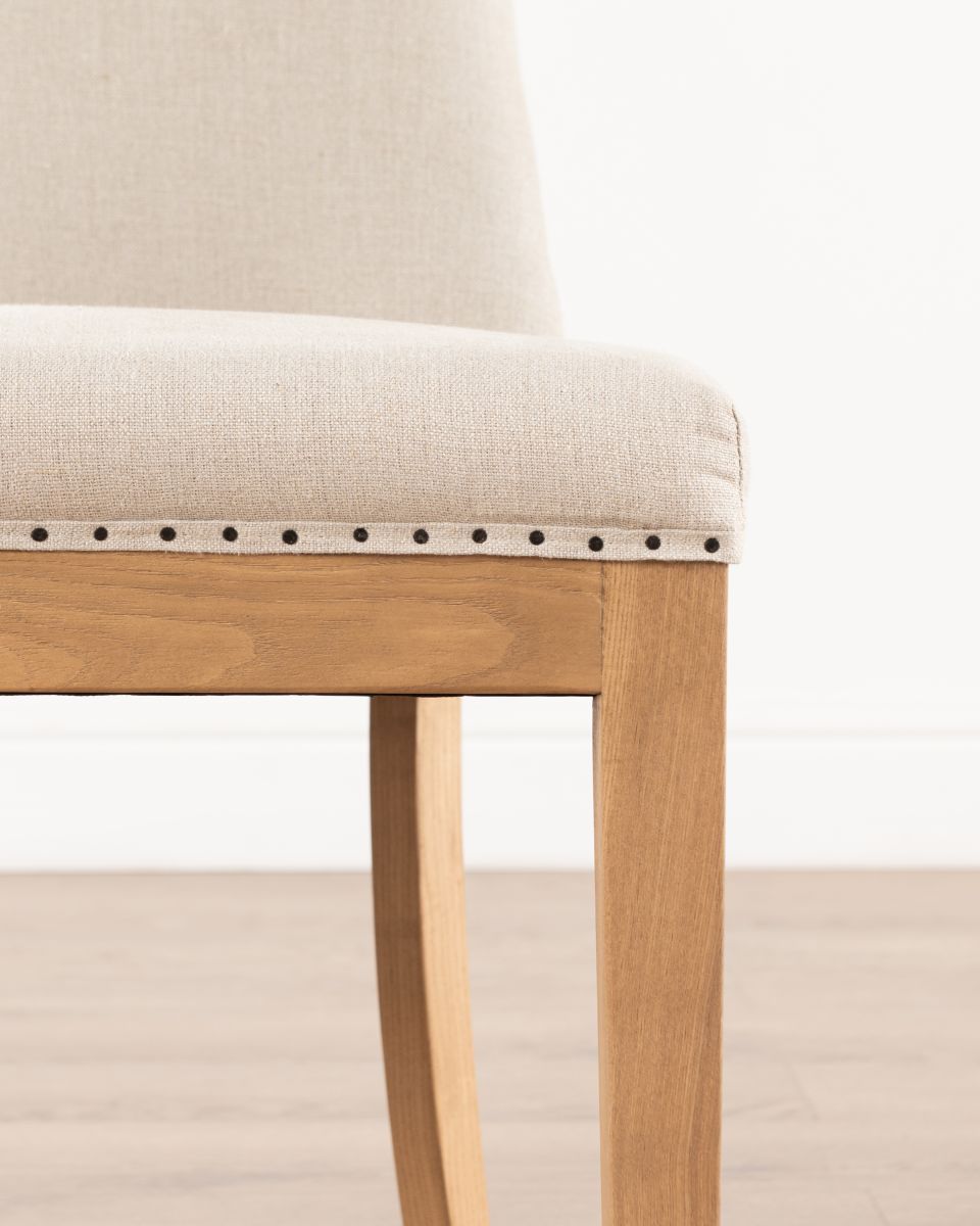 A timeless fusion of classic charm and refined craftsmanship, the Beaufort Dining Chair embodies effortless elegance. Crafted from solid ashwood, its graceful curves and natural finish exude warmth and sophistication. The seat and backrest are upholstered in 100% linen, offering a soft, breathable texture that complements its tailored silhouette. A subtle line of antique-style studs adds an artisanal touch, while the gently tapered legs bring a sense of balance and lightness to any dining setting.
