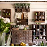 Sturdy metal accents, including vintage-style cup handles and label holders
