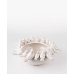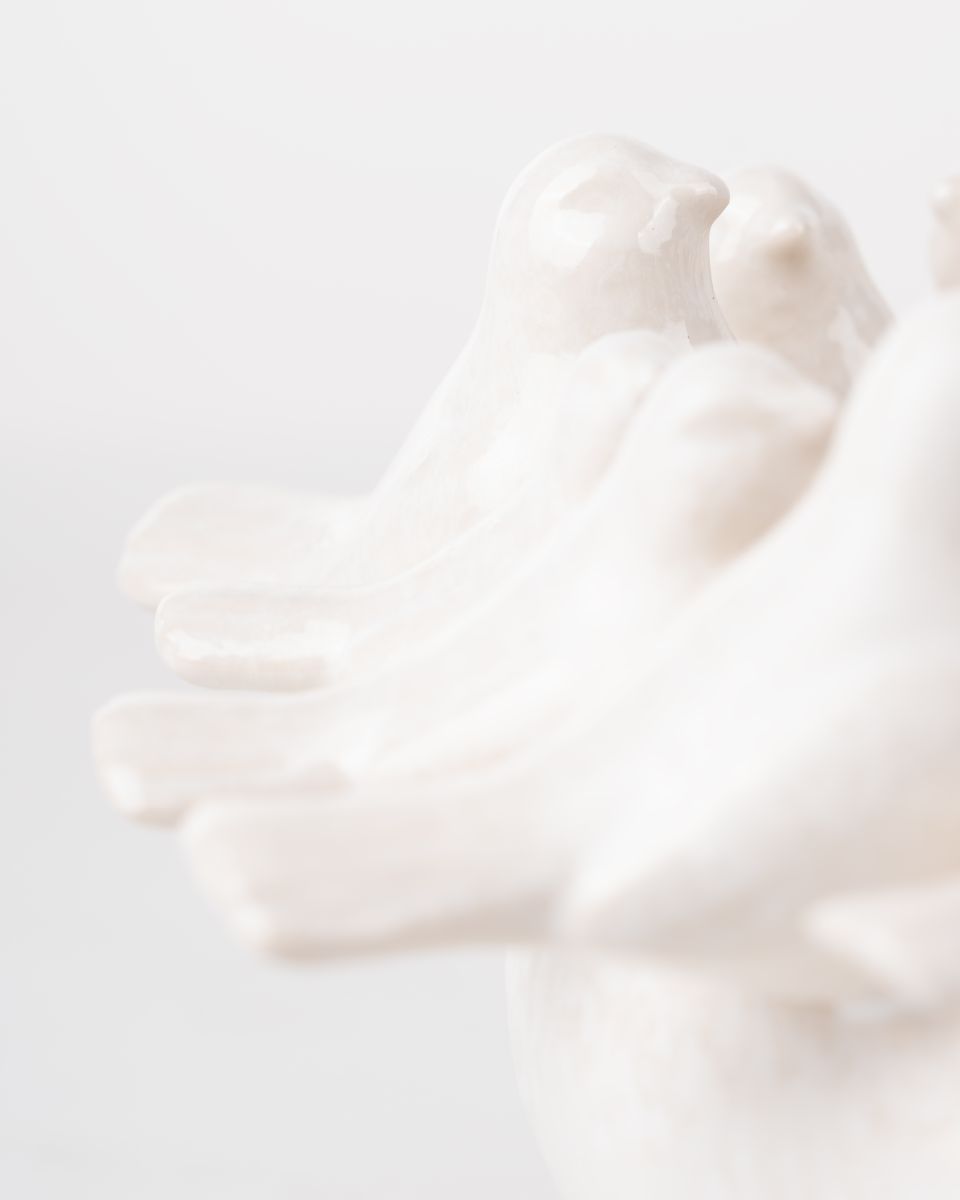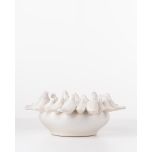 The Bird Ceramic Bowl boasts a whimsical design adorned with multiple birds perched around its rim. Its neutral, satin finish offers a classic touch, creating a standout piece that effortlessly combines playful charm with refined elegance.