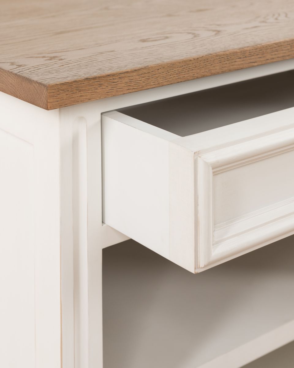 The French collection echoes French design features from the 17th century. Mixed with our innovative design elements and craftsmanship, these pieces are comfortable for contemporary living. Traditional and contemporary work well together with our Bordeaux bedside table. (shown here in Weathered Oak with an Antique White base)