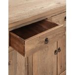 Add a touch of natural elegance to your home with the Buhle Sideboard from our Ebony Collection. Featuring a natural wood finish highlighting the beauty of the wood grain, it creates a warm and inviting focal point in your living space. With three drawers and two cupboards, it offers ample storage space. The versatile design complements a variety of decor styles, from rustic farmhouse to modern contemporary and classic alike.