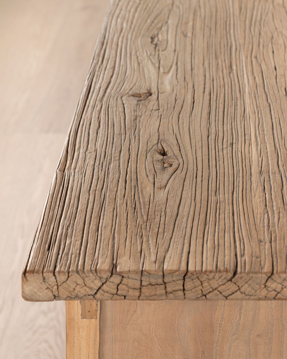 The wood in this state is untreated, therefore contact with all liquids (especially red wine and oils) should be avoided. Avoid excessive sunlight, dampness, and hot or cold conditions. Clean spills or smudges with a damp cloth. Avoid all polishes, waxes and sealers, unless done by a professional. The natural look and feel of this product is what you love about it, so any marks that might develop should be viewed as added character.
