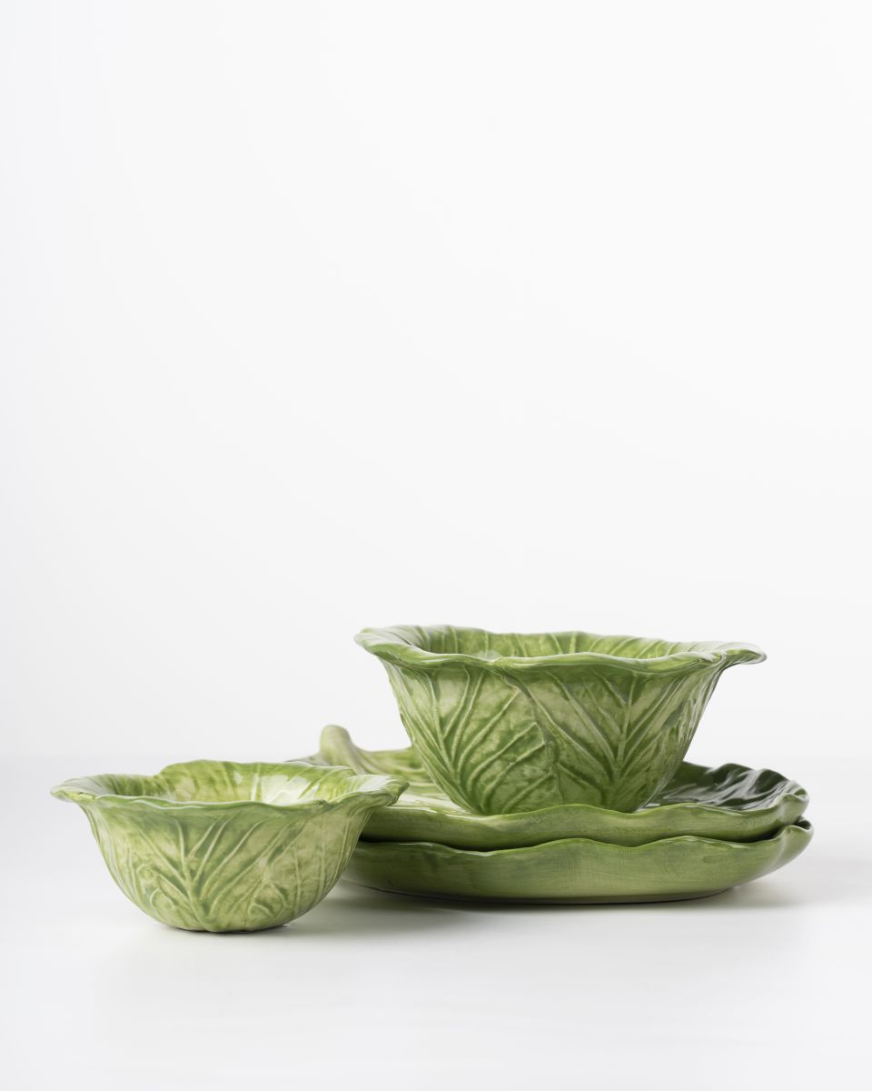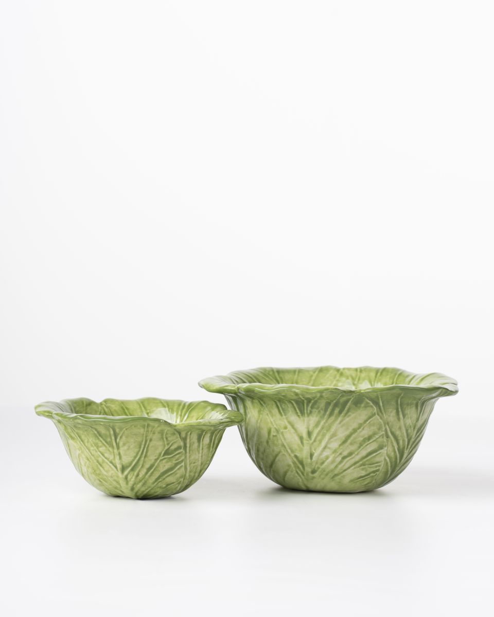 The Ceramic Cabbage Leaf Bowl captures the beauty of nature in a charming, sculptural form. Crafted from ceramic with a glossy green glaze, it features delicately veined detailing that mimics the look of real cabbage leaves. Available in two sizes, these bowls are as practical as they are decorative — perfect for serving salads, displaying fruit, or adding a whimsical touch to your table setting. Their organic texture and rich colour bring a fresh, botanical accent to any home.