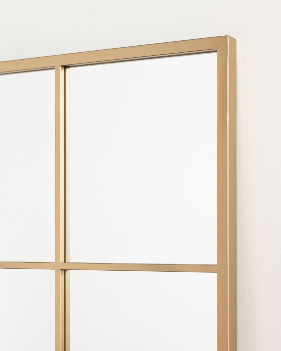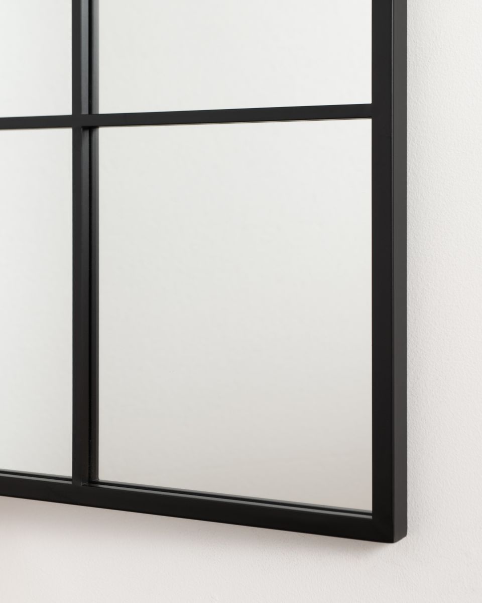The Camden Mirror features a structured grid design set within a slim iron frame, creating a strong yet balanced look. The grid detail introduces architectural interest while keeping the overall design clean and uncluttered.
