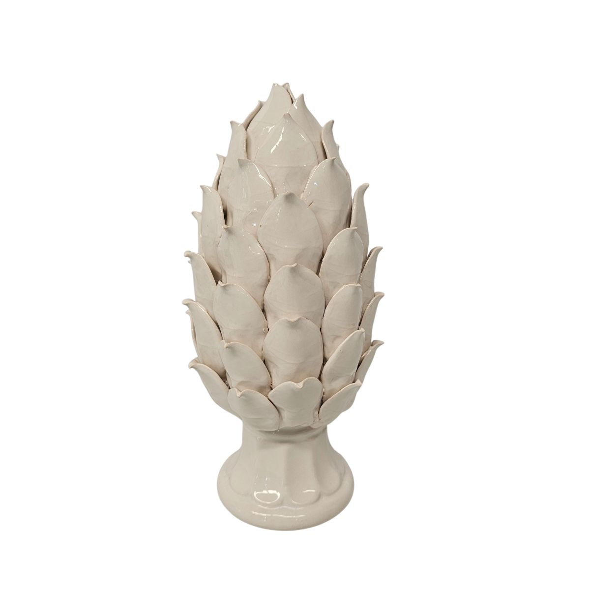 - Features layered, sculpted leaves arranged in an artichoke silhouette and a glossy, neutral glaze