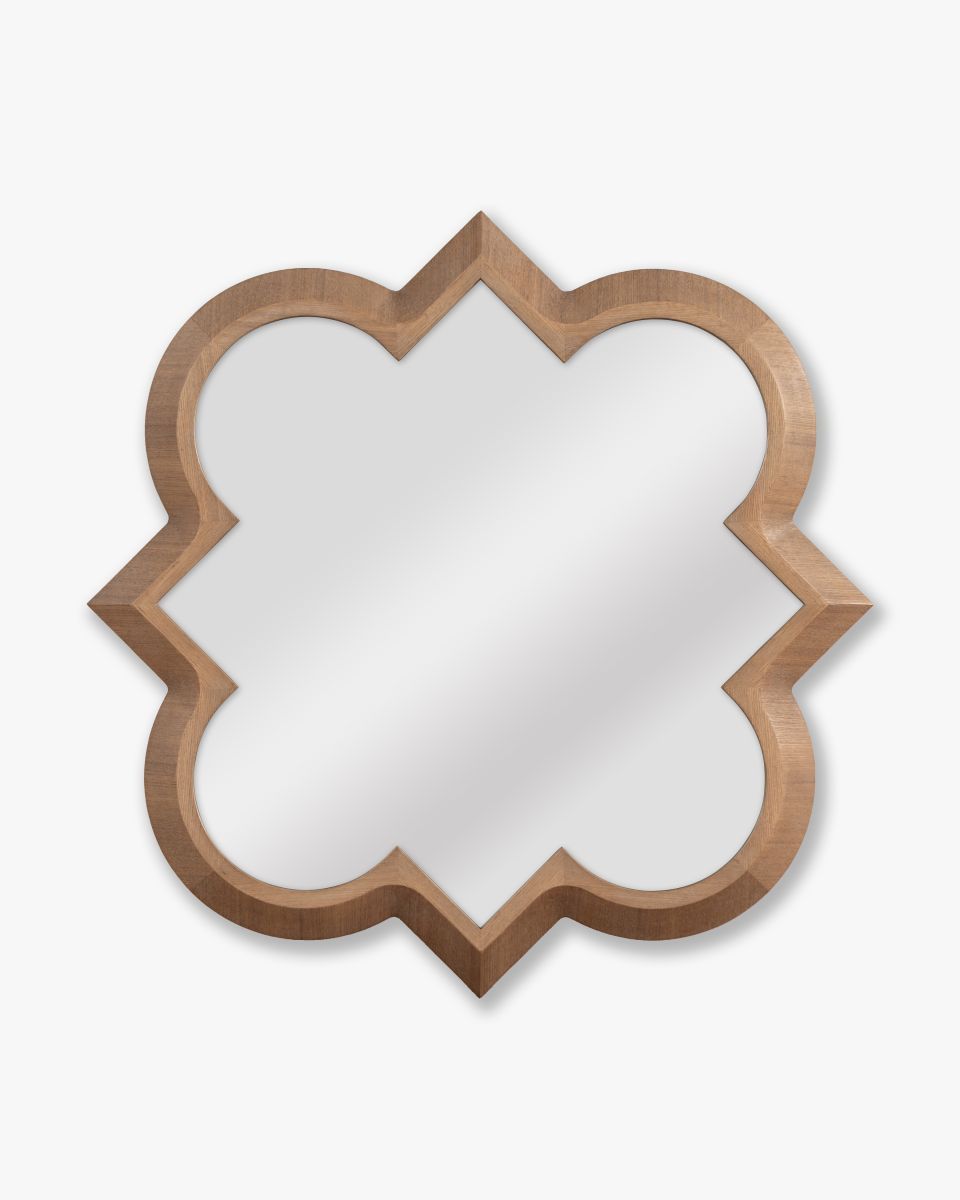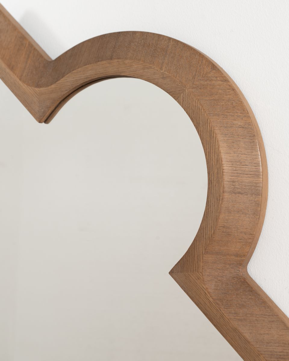 The Clover Mirror introduces a softer silhouette to the Ebony Collection. Its ash wood veneer frame traces a sculpted, clover-inspired form that feels both architectural and playful, striking a balance between clean structure and decorative charm.