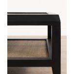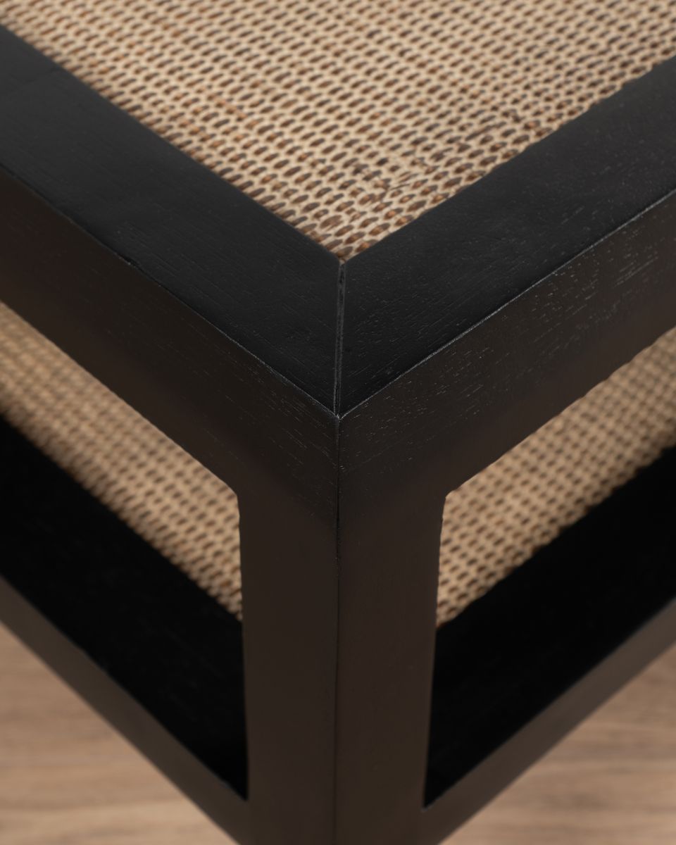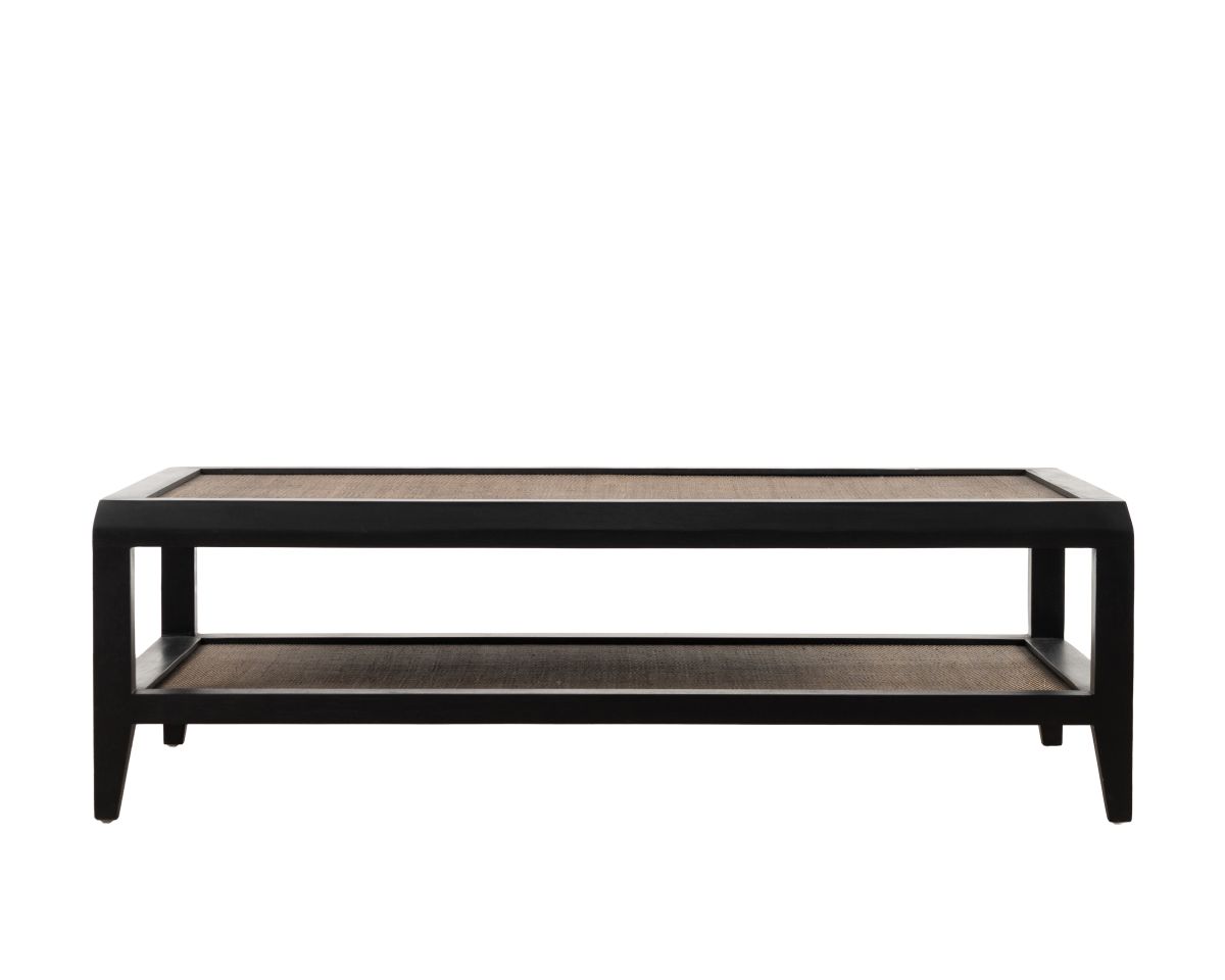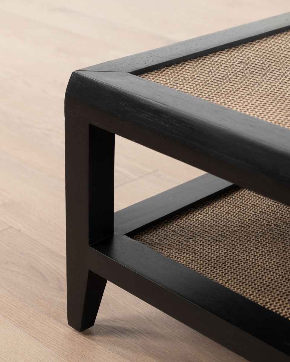 The Palm coffee table from the Villa collection blends modern design with classic elements, featuring a striking contrast between black wood and warm brown cane inserts. Crafted from durable bayur wood, this table is a versatile addition to any lounge. The rattan inlay on top adds texture and interest, while the bottom shelf provides extra space for stacking books or showcasing decorative items. Its simple shape, combined with intricate details, makes it a perfect centrepiece for your living room. Pair it with neutral-toned furniture and add a few indoor plants to accentuate its natural elements.