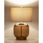 • Natural linen shade offering warm, ambient light