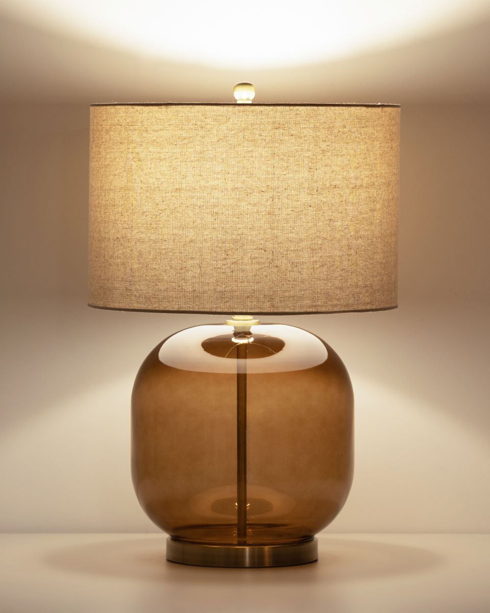 The Copperleaf Lamp blends natural textures with modern form. The smooth glass base, paired with sleek metal finishes, creates a striking silhouette, while the natural linen shade introduces an organic softness. A refined balance of materials makes this lamp an effortless addition to curated, layered spaces.