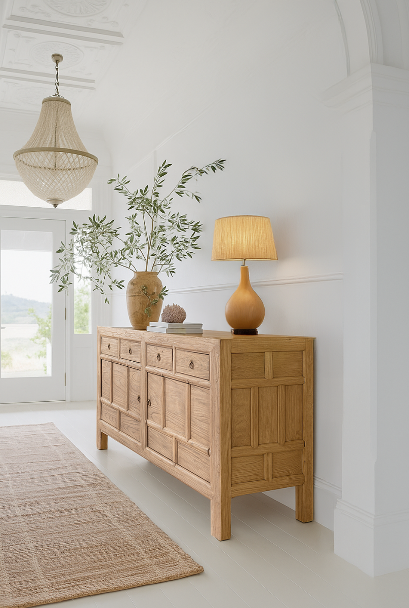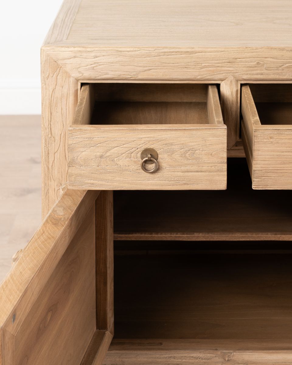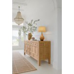 Crafted from elm with a natural finish, this range celebrates bold shapes and stripped-back design. Architectural and grounded, each piece is softened by subtle curves and rounded edges, offering a look that feels both ancient and modern.