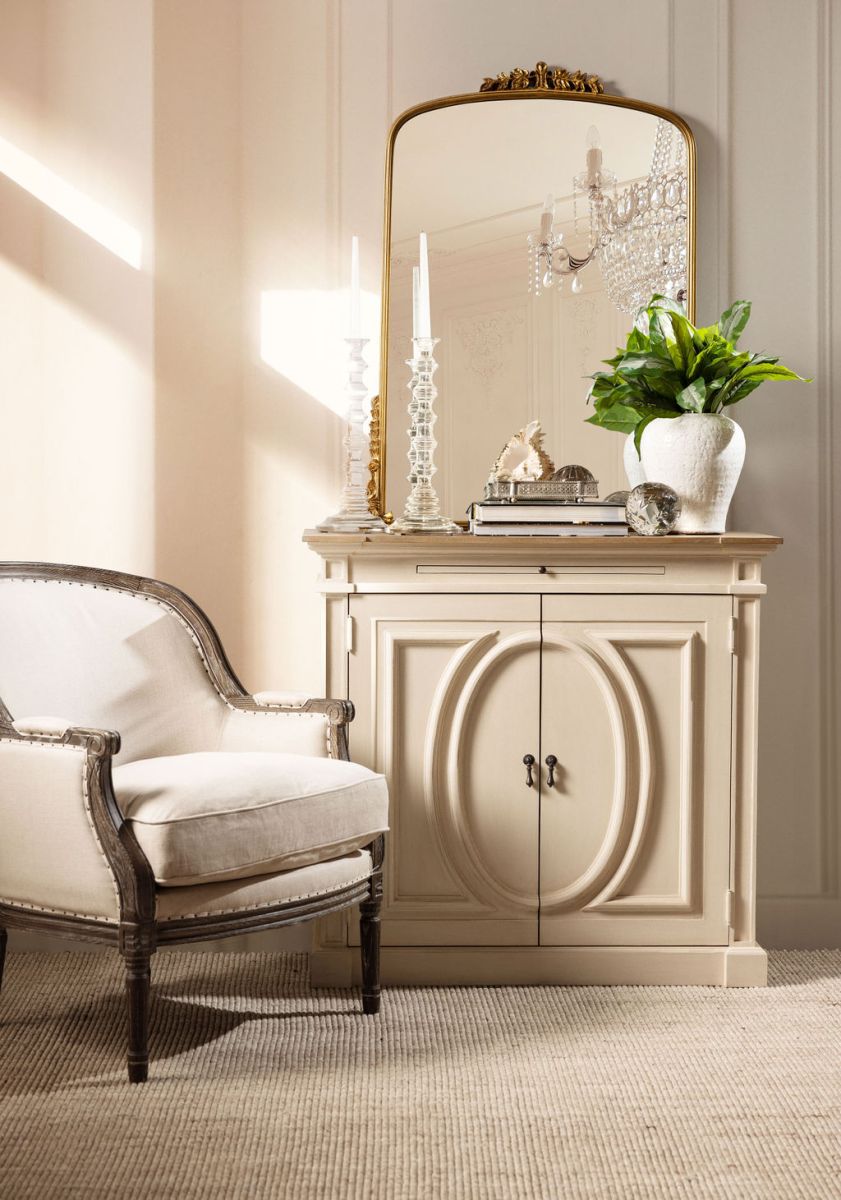 The Emilia mirror from the Château Collection embraces modern maximalismwith it's baroque-inspired, ornate flourishes resembles the decorative mirrors of the past while. The scroll work at the centre of the mirror and climbing the sides is a stylish nod to vintage pieces. Enhance the wall above a mantle or in a master bedroom to create an enticing focal point in your space.