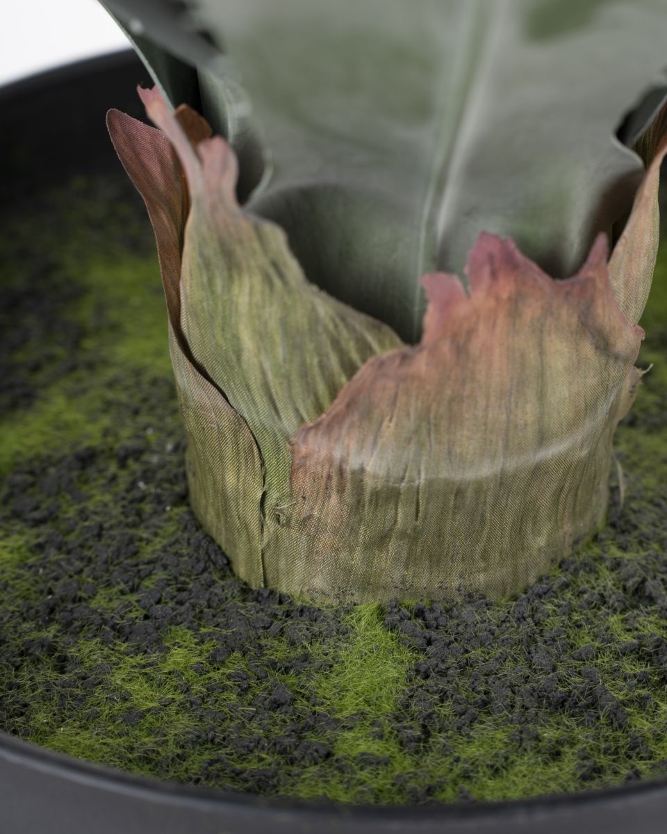 - Deep green tones and a sleek black pot are ideal for modern or minimalist interiors