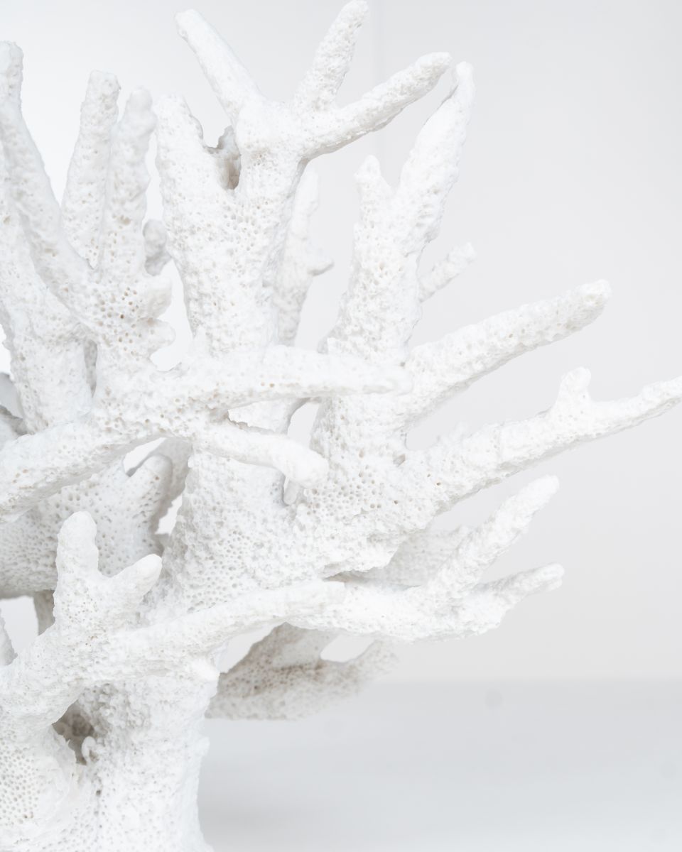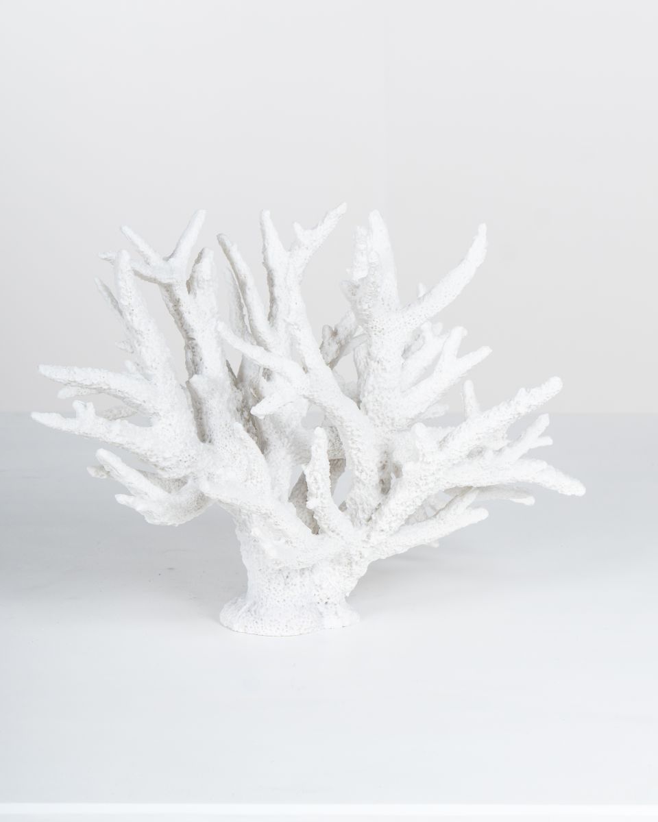 Bring the striking beauty of the coral reef into your home with the white Faux Coral Branch. This accent piece features fine, textured details for a realistic and sculptured look. With its flat base for easy placement, the Faux Coral Branch is a captivating addition to bookcases, side tables and shelves.