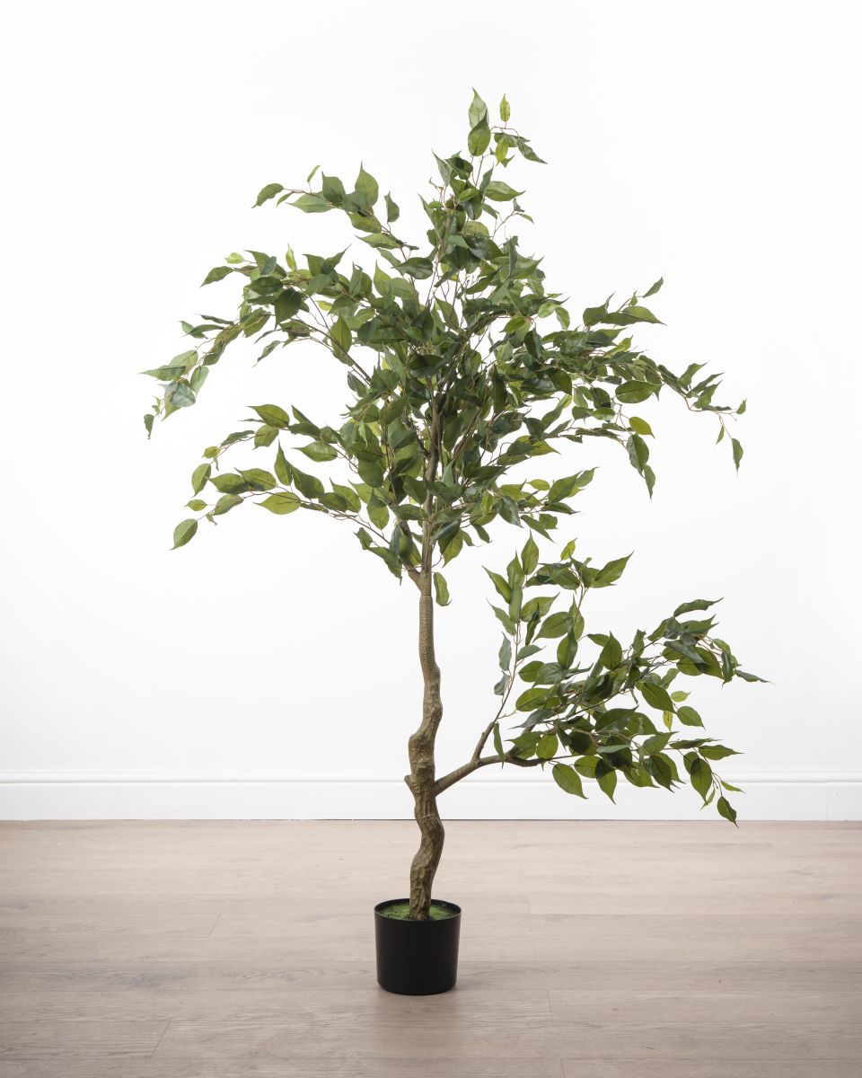 Bring timeless greenery into your home with the Faux Ficus Tree. Designed to capture the natural beauty of a real ficus, this artificial plant features a gracefully twisting trunk topped with abundant, glossy green leaves that create a full and realistic canopy. Its detailed foliage offers a lifelike texture and layered depth, making it a perfect, low-maintenance choice for adding a fresh and vibrant touch to any space.