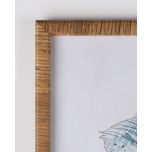 - Subtle, vintage-style wood and rattan frame lend the piece an archival quality