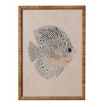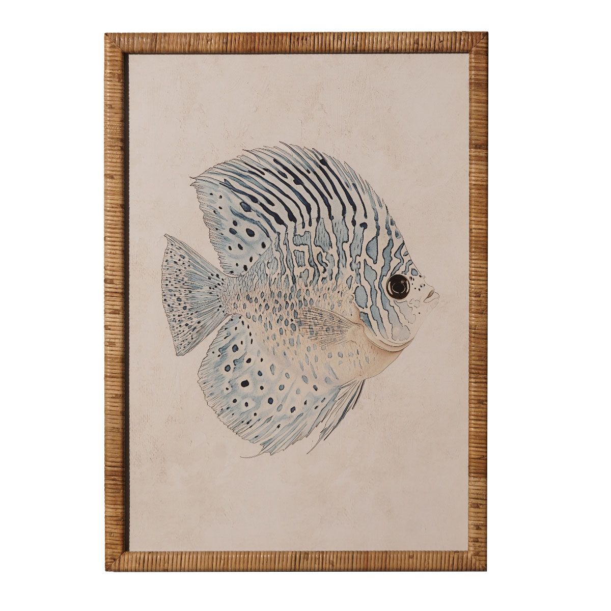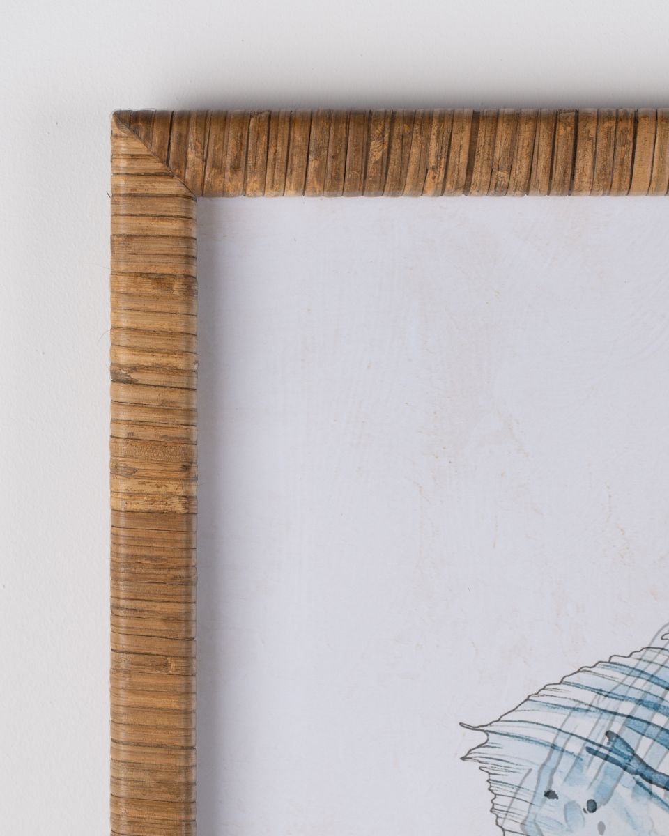 Bring the tranquil beauty of the ocean into your home with the Fish Framed Wall Art. Featuring a finely detailed illustration of a fish in shades of soft blue, cream, and grey, it's a captivating addition to any space. The neutral background and vintage-style wood and rattan frame give the piece an archival quality. Perfect for creating a calm and natural atmosphere, the print works wonderfully as a standalone piece or as part of a curated gallery wall. Ideal for living areas, hallways, bedrooms or studies.