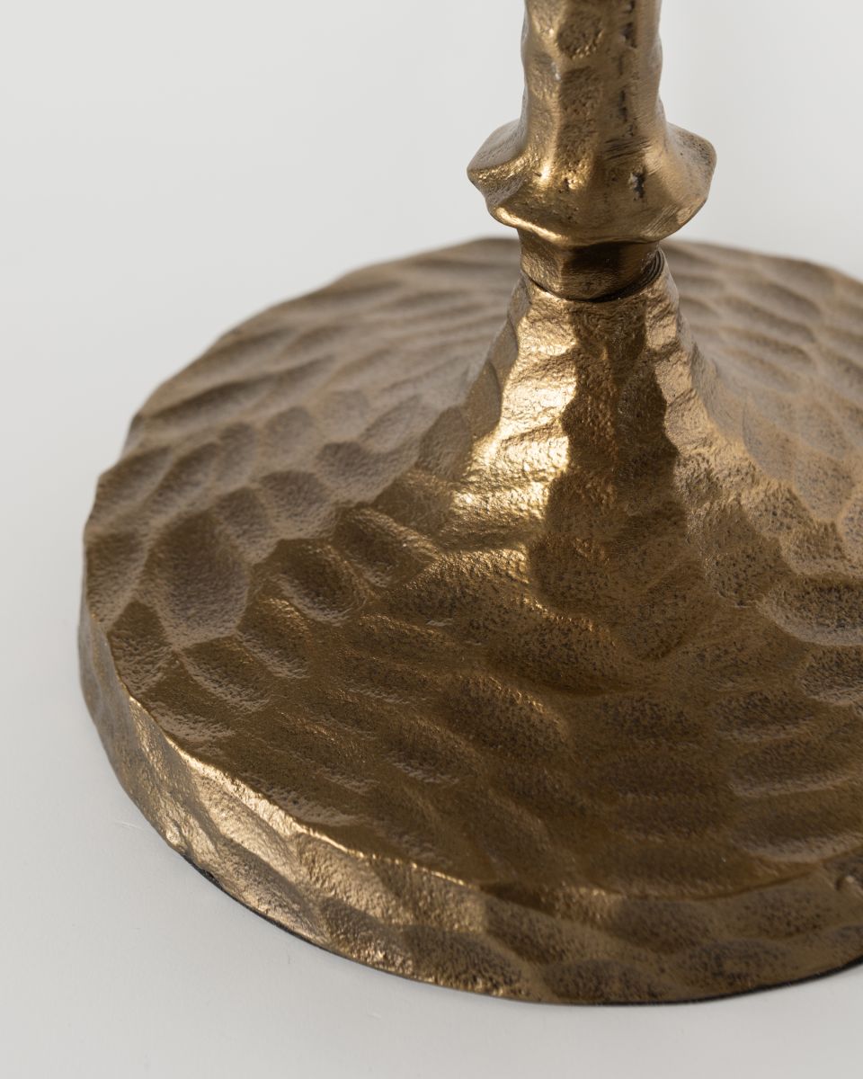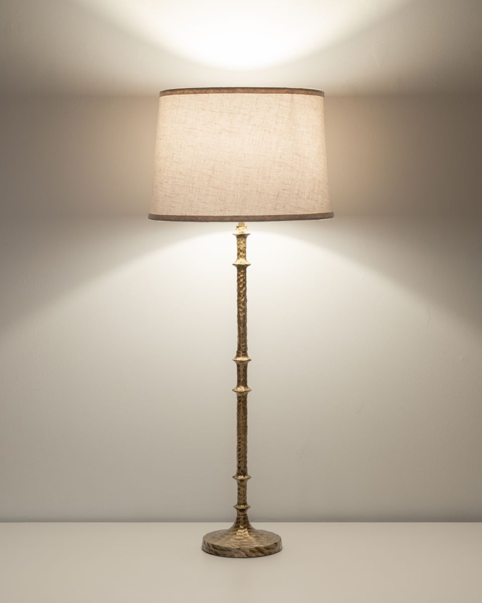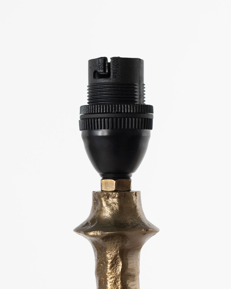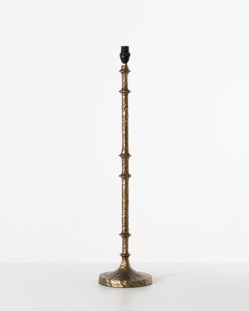 The Foundry Lamp Base is crafted from sturdy metal, blending artisanal texture with warm metallic tones. Featuring a distinctive hammered texture, it brings a tactile texture to your space while the antique brass finish adds warmth. Designed to fit bayonet bulbs, we recommend pairing it with a neutral lamp shade for both classic and contemporary interiors.