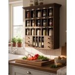 Designed for organisation and display, the cabinet includes multiple open cubby compartments, vertical dividers, and small wooden drawers, making it ideal for storing everything from gardening essentials to household keepsakes. Brass-toned label holders add a practical, vintage-inspired detail, perfect for those who appreciate both beauty and functionality.
