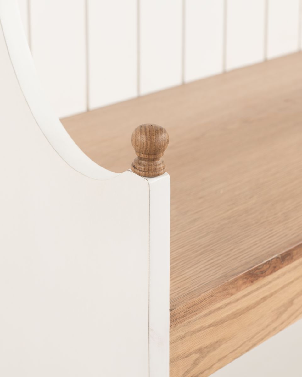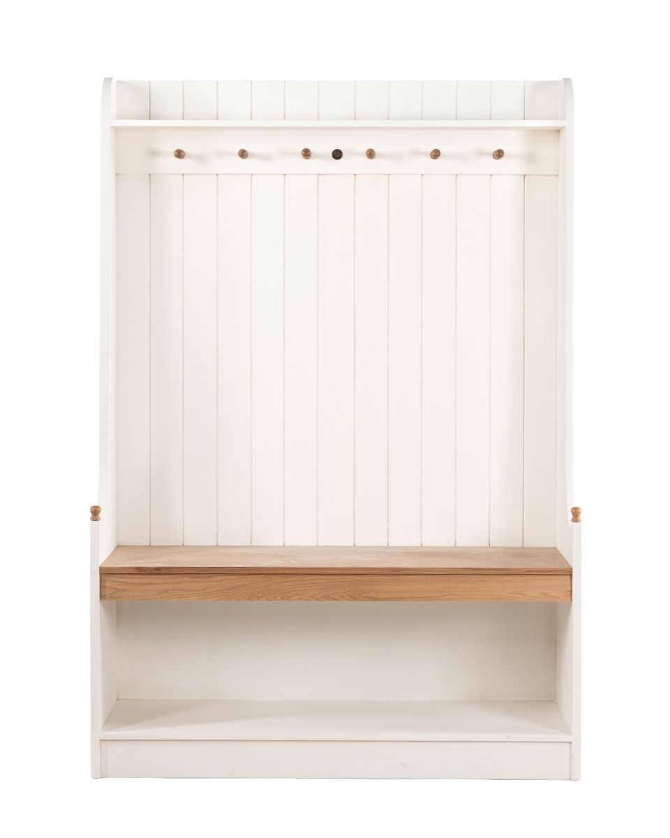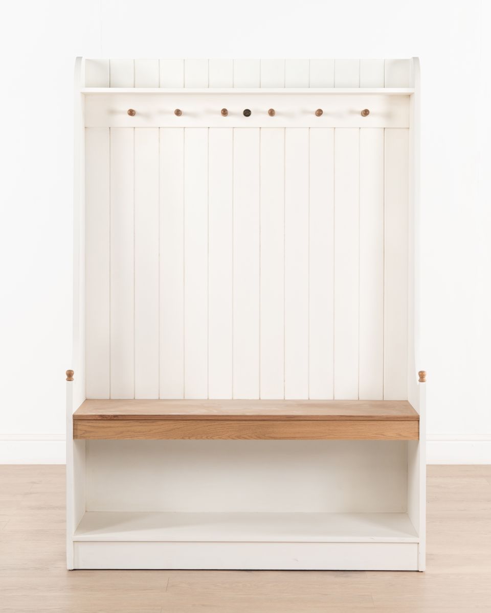 Bring classic country charm and everyday practicality into your home with the Hampshire Coat Stand. Thoughtfully designed with a tall panelled back, a solid Weathered Oak seat, and beautifully sculpted Antique White framing, this piece adds warmth, character, and effortless organisation to any entryway, mudroom, or bedroom.