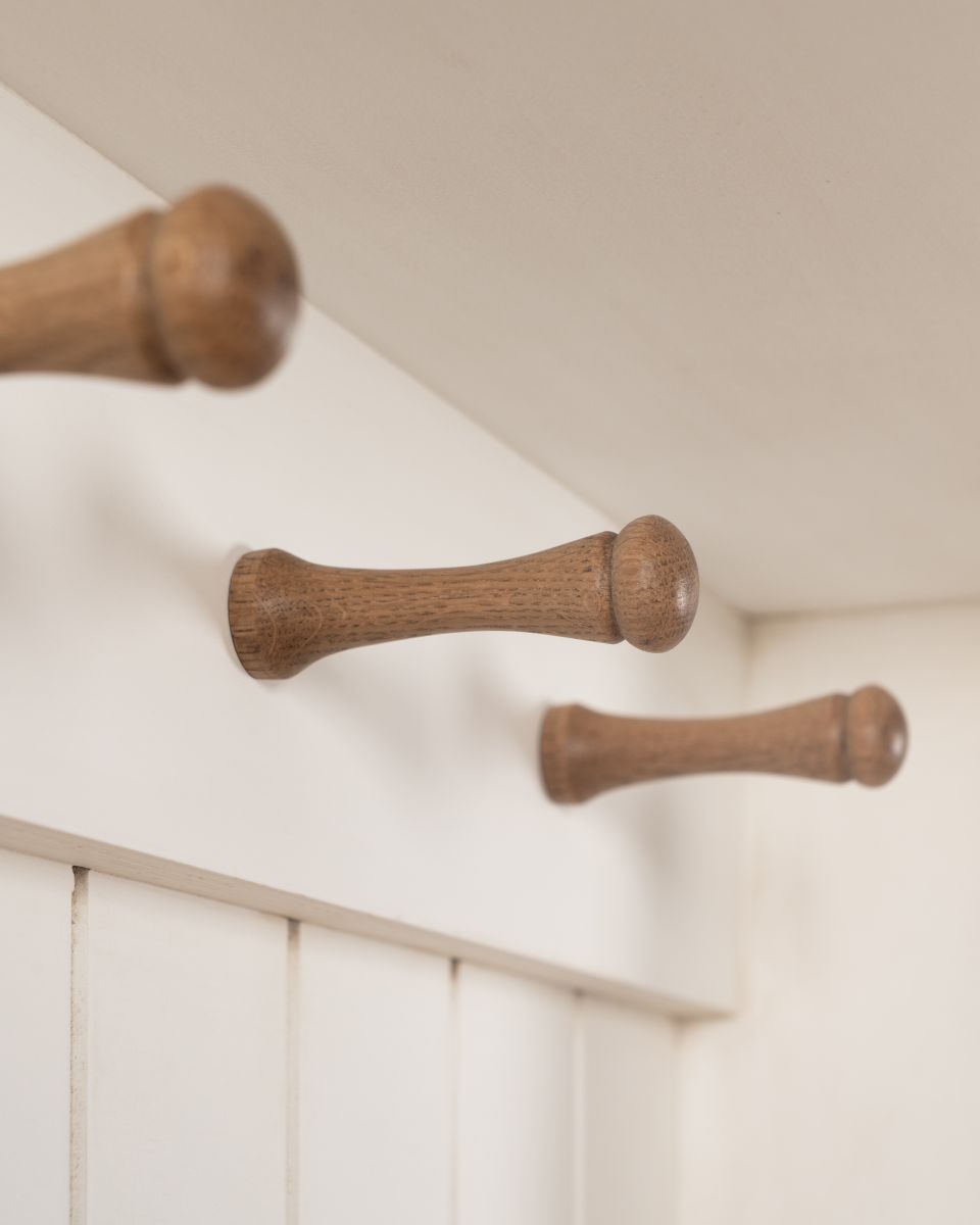 • Turned Weathered Oak pegs for coats, hats, bags & more