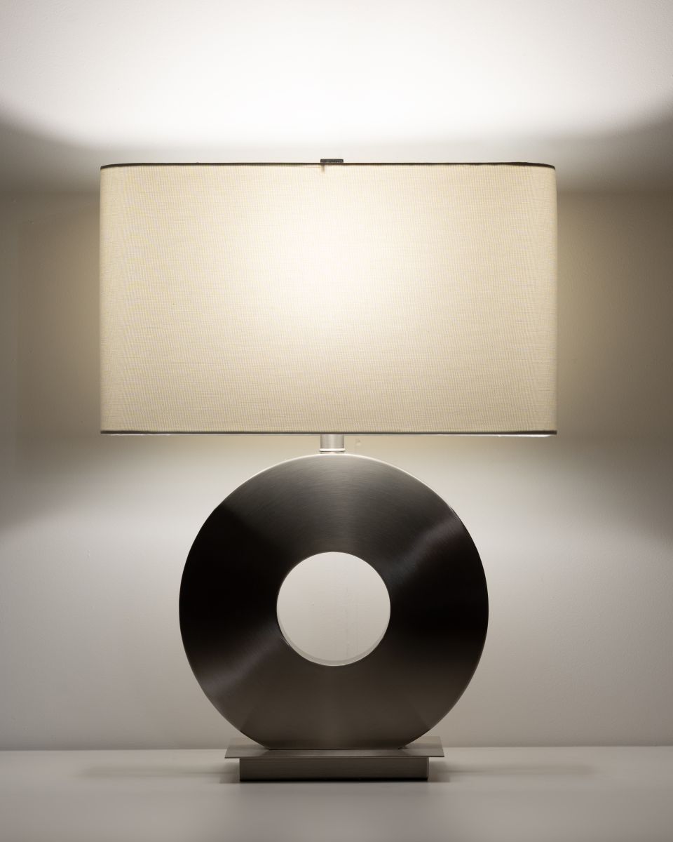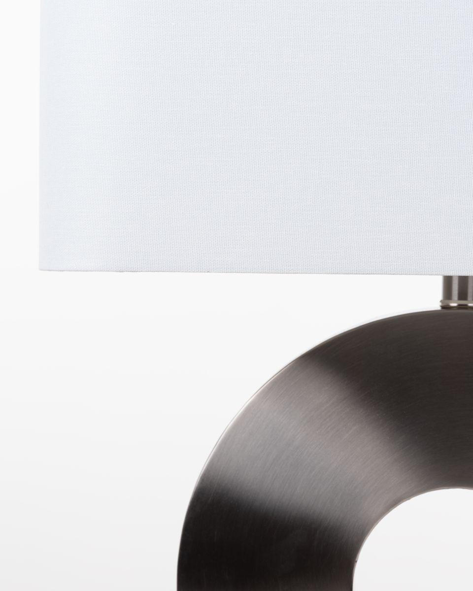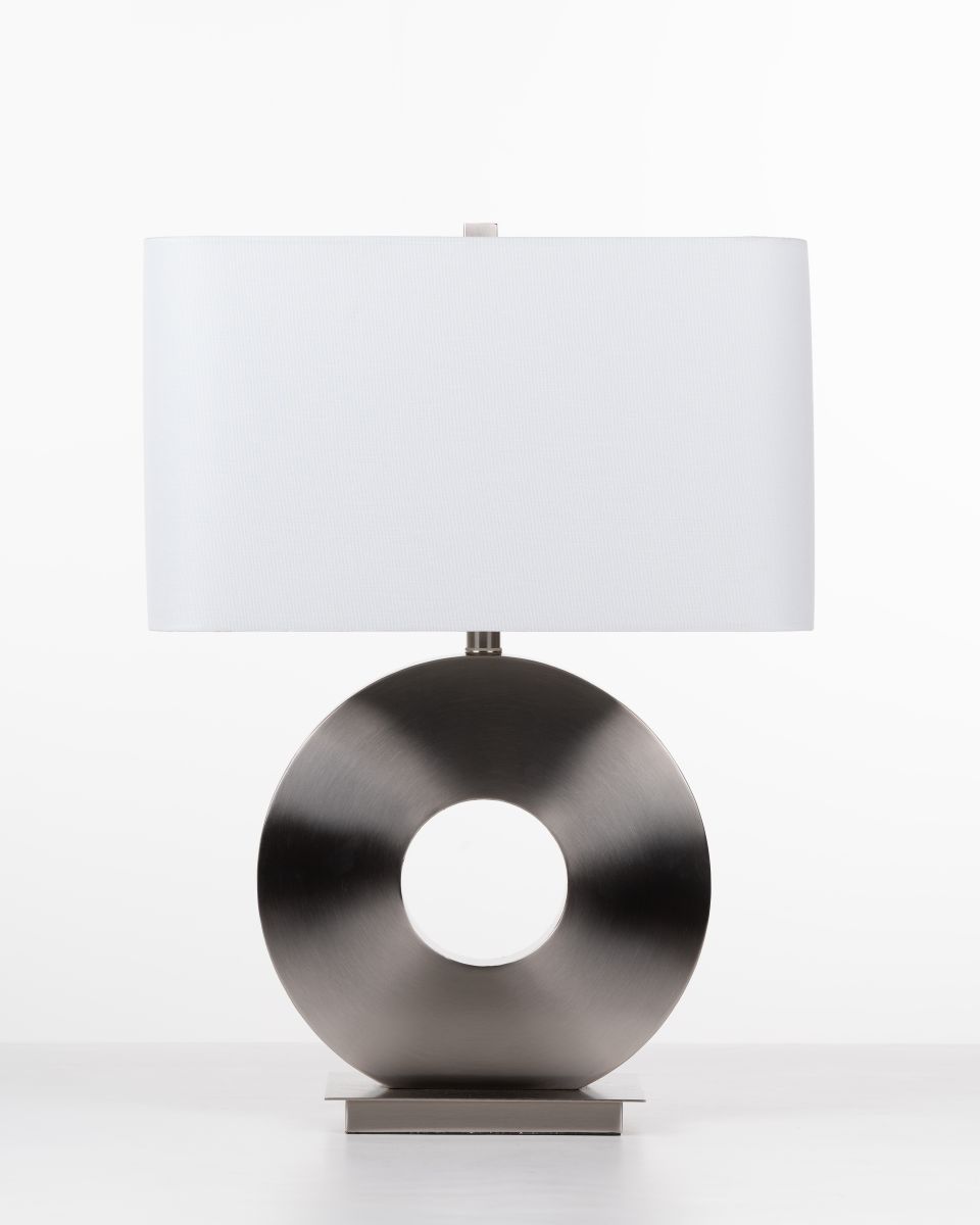 Lamps are ideal for accent lighting, helping to reduce "dead" spots in your home's lighting plan, creating ambience, and adding a touch of style. The Hobbes Lamp brings sculptural style to your space, with its brushed silver base with white oval shade.