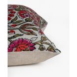 • Features a striking design of lush blossoms and foliage in deep pink, red, and olive-green hues on the front and a neutral back cover