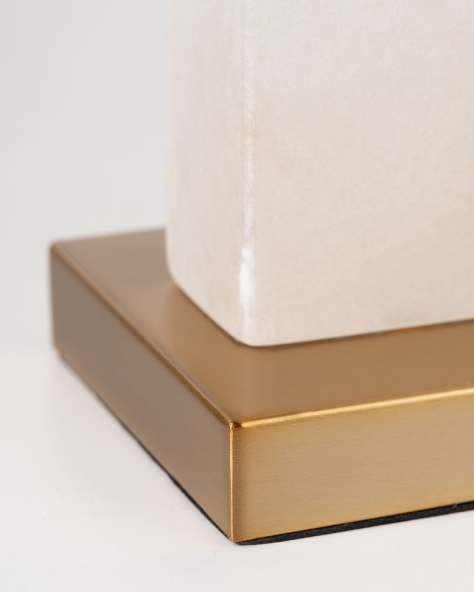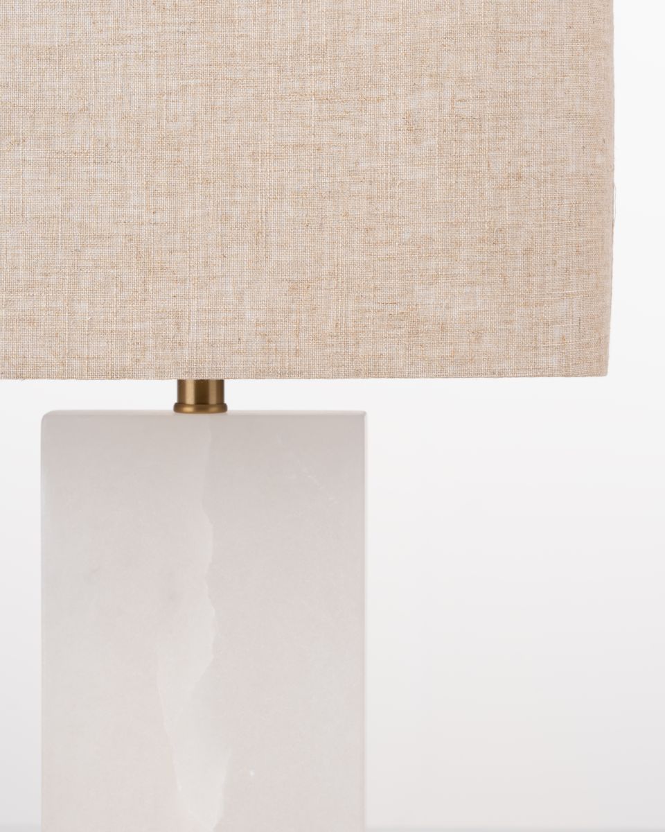 Sleek and sculptural, The Ivory Ridge Lamp highlights the quiet beauty of natural alabaster. The stone’s softly glowing finish pairs harmoniously with warm metal accents, while the linen shade introduces organic texture and gentle diffusion. Its clean, structured form makes it the perfect addition to sophisticated interiors that value simplicity and material richness.