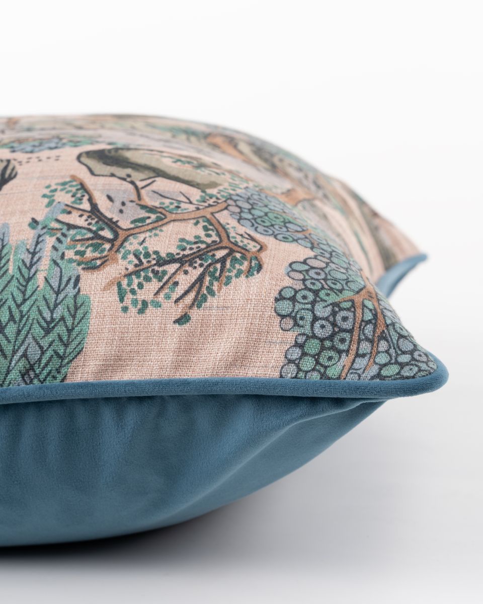 The cushion is finished with a luxurious blue velvet backing and matching velvet piping for a refined, tailored look. Inside, a feather inner provides superior comfort, loft and durability, ensuring the cushion keeps its shape while offering a soft, indulgent feel.