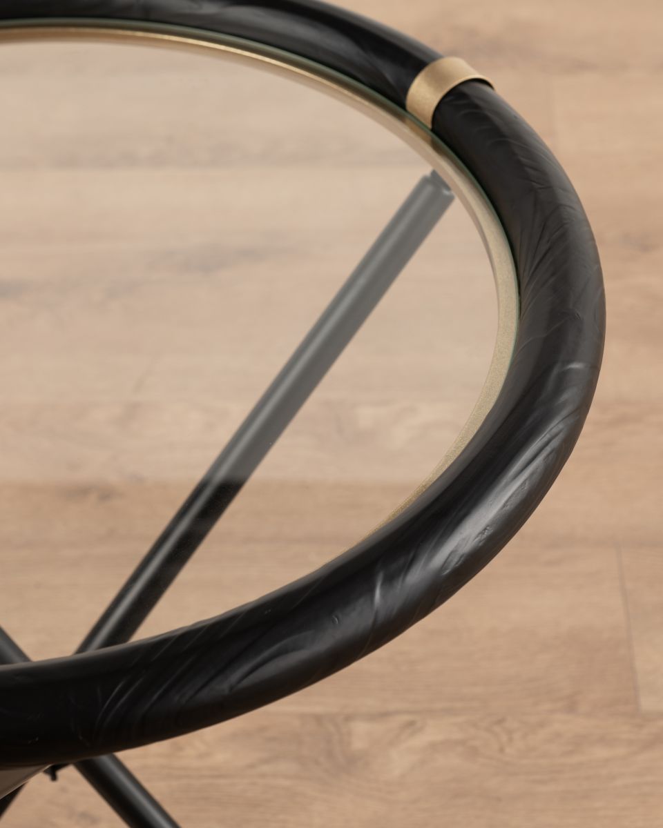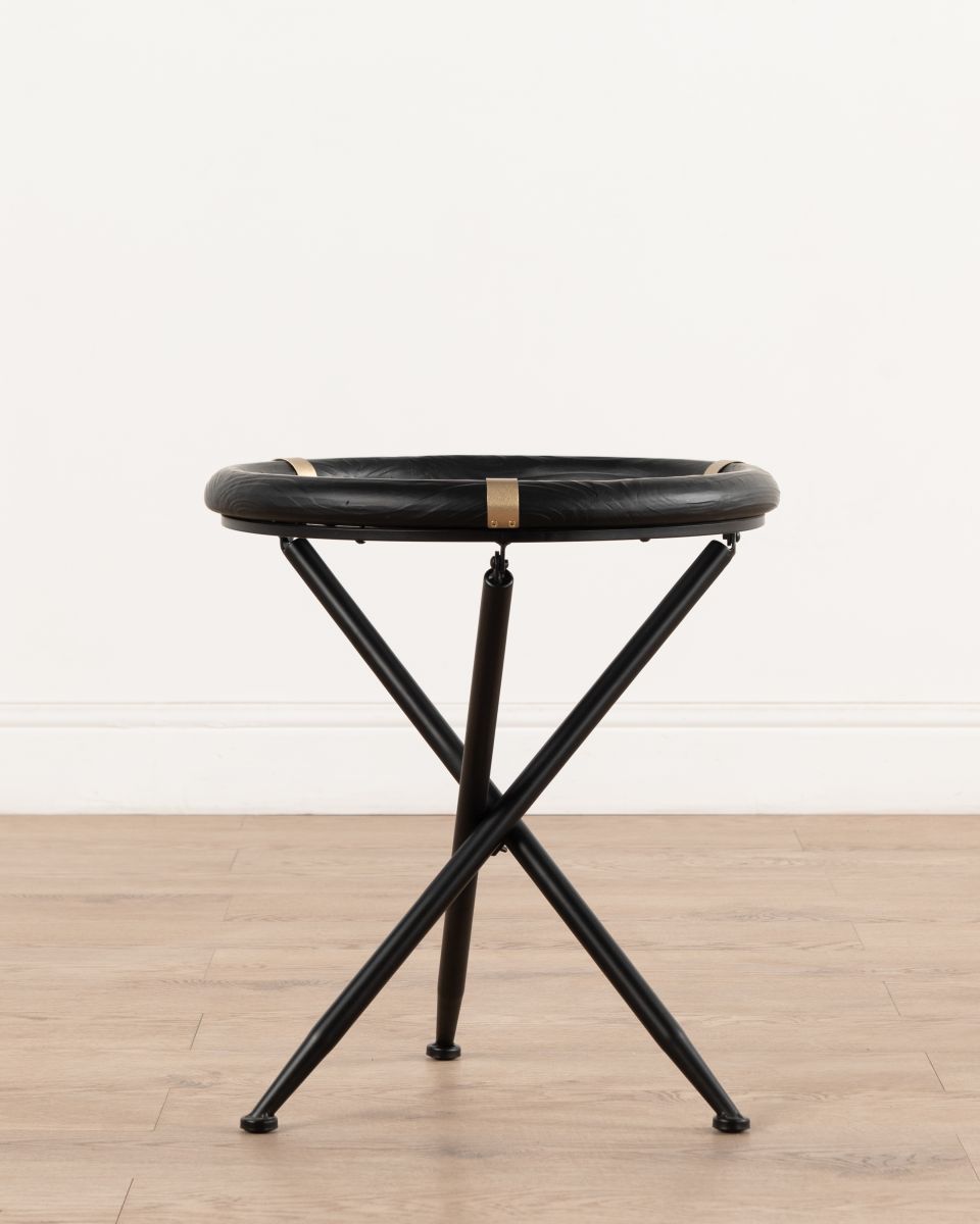 The circular top contrasts beautifully with the angular leg structure, striking a balance between softness and strength. Elegant without being ornate, Kiro suits interiors that favour clean lines, tonal palettes and considered detail.