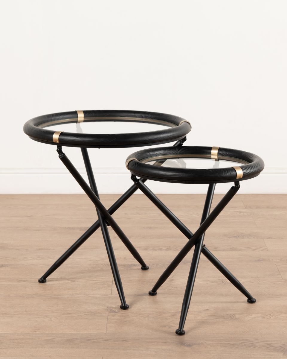 The Kiro Side Table pairs sculptural form with refined materiality, bringing a lighter touch to the Ebony Collection. A black stained fir wood top with a glass insert allows light to pass through, while slender iron legs create a crisp, sculptural base.