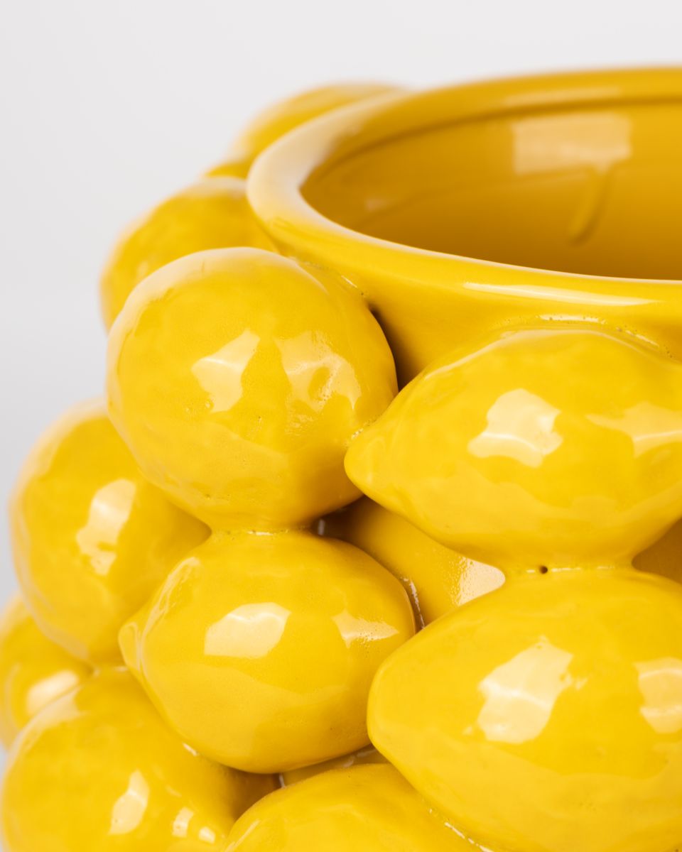 The Ceramic Lemon Vase is a bright and cheery addition to any space. This ceramic vase features a unique design in a beautiful, bright yellow glaze. Fill with a small bouquet or simply let its vibrant colour and playful shape be the star.