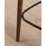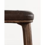 The Linear Bar Chair from our Ebony Collection blends refined craftsmanship with modern comfort. Featuring a sturdy ash wood frame with tapered legs in a dark finish, it's reinforced with a metal footrest for stability and comfort. Its rich, leather seat offers timeless, sophisticated appeal, pairing perfectly with a variety of interior styles. Subtle cushioning provides exceptional comfort. Ideal for kitchens, bar counters and entertainment areas.