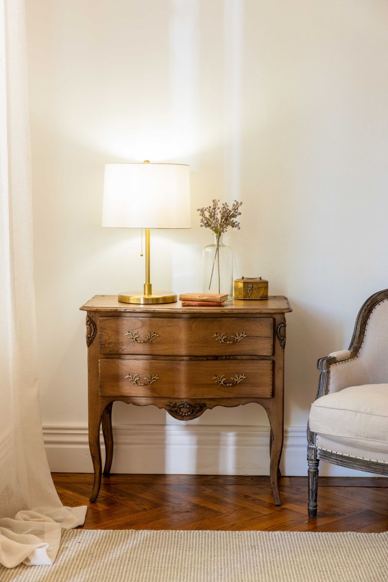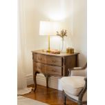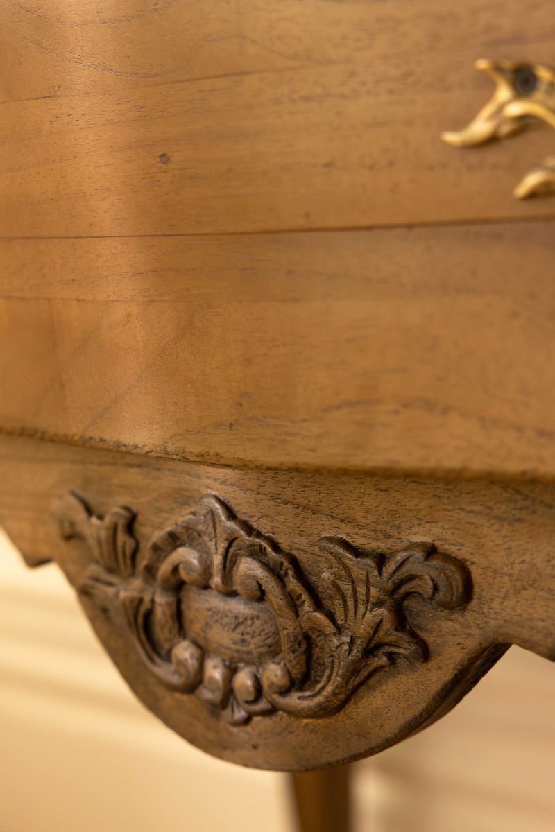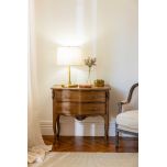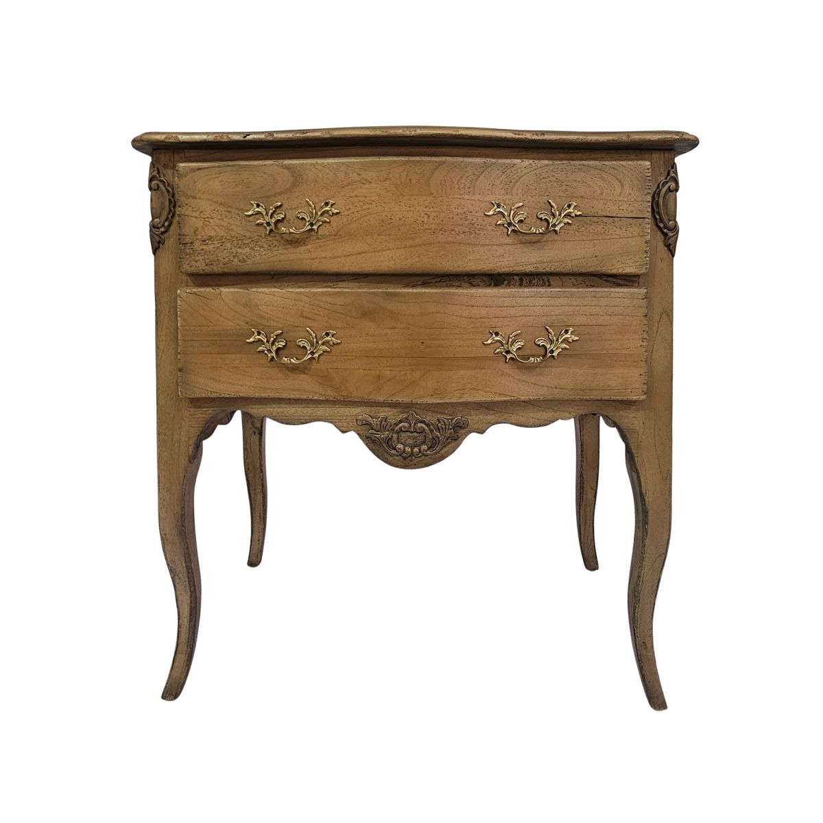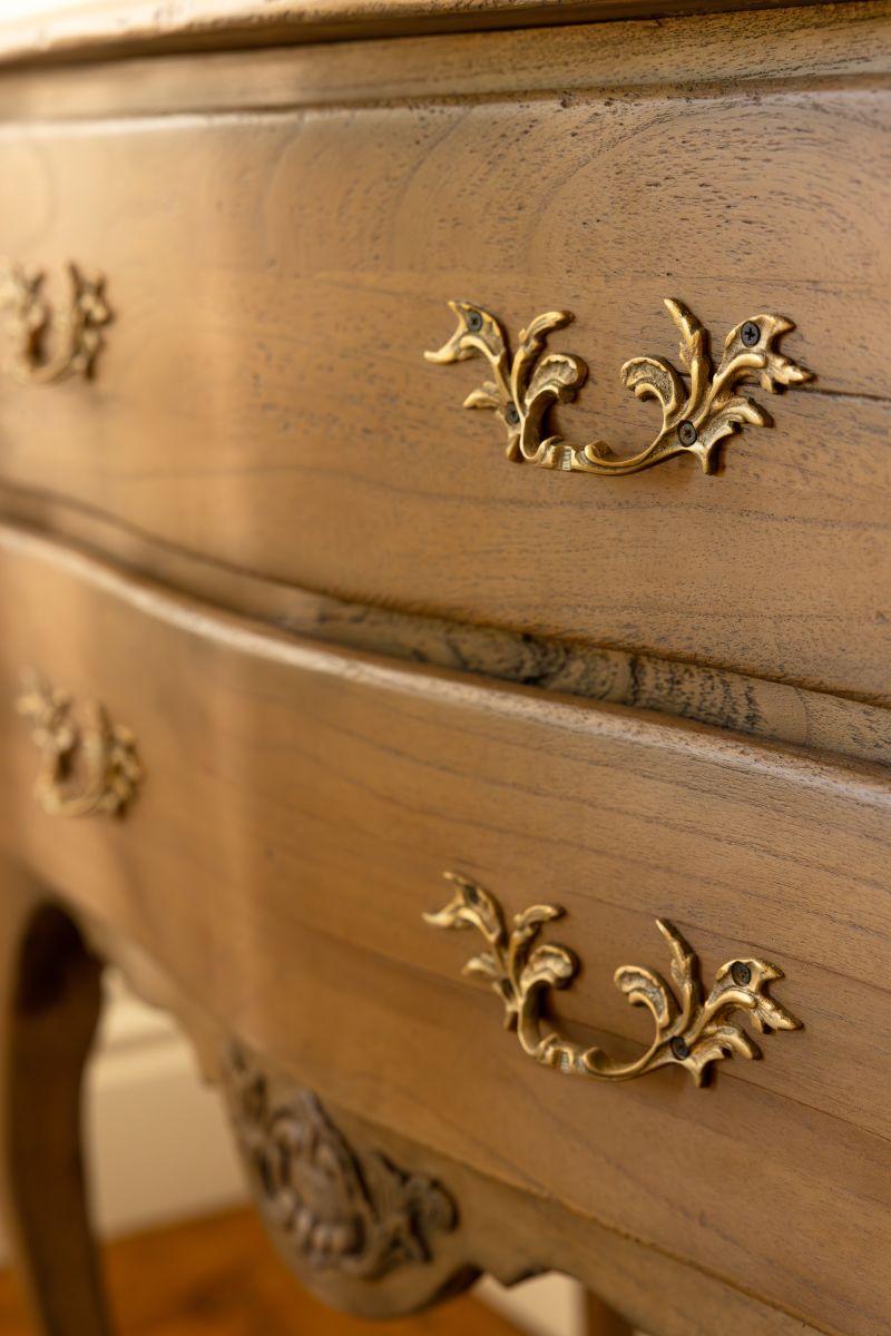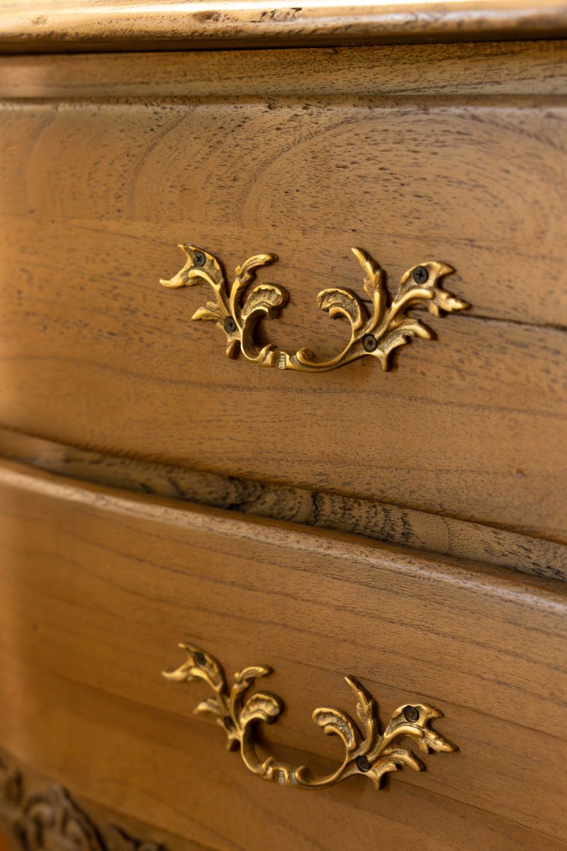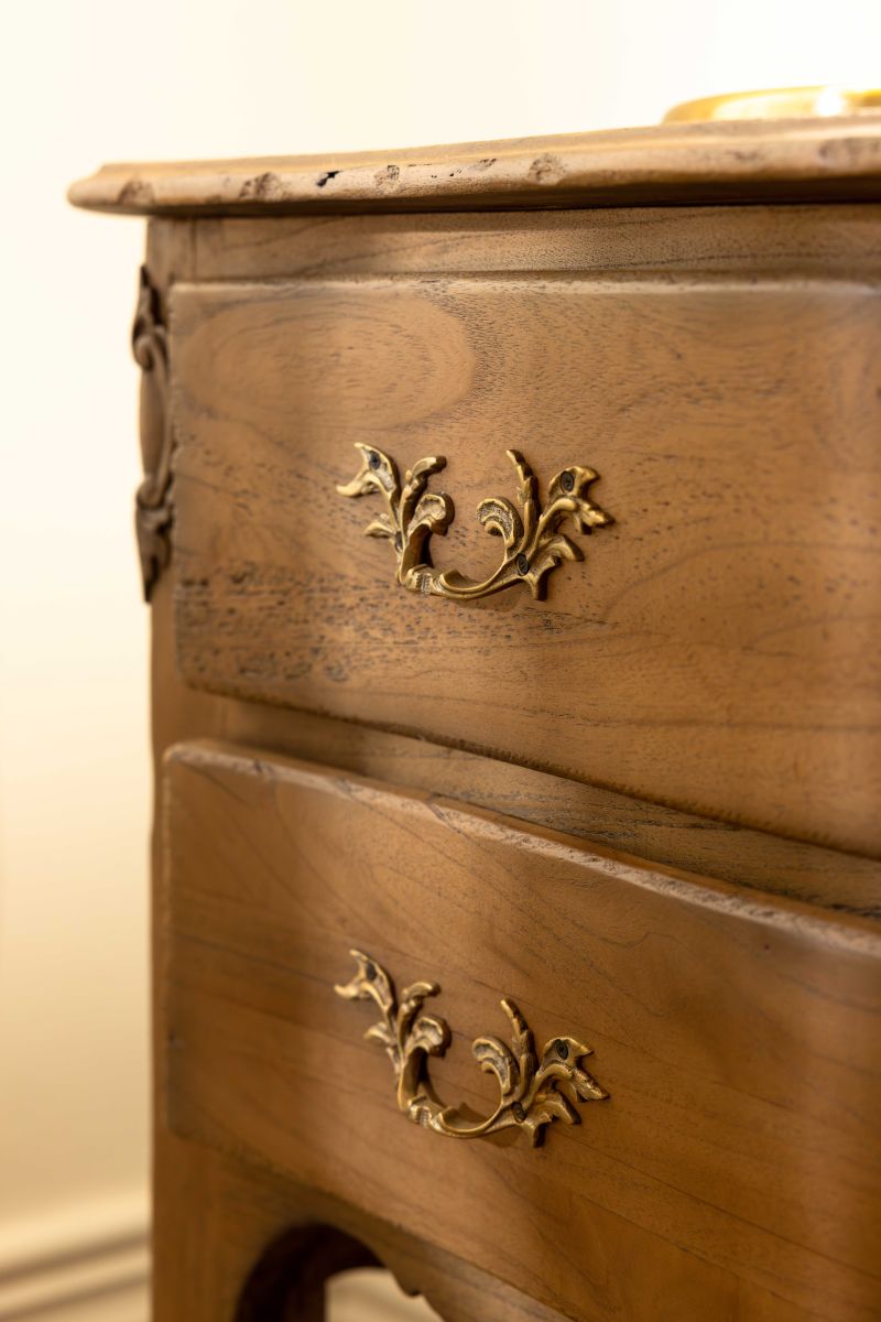 The Louis XV chest of drawers from the Chateau collection offers timeless elegance with a touch of French country style. Crafted from mindi wood with a walnut finish, its two spacious drawers provide both style and practicality. Perfect for placing on either side of a bed, this piece keeps your surfaces tidy while adding detail. Whether styled in a traditional setting or used to enhance a modern space, this chest of drawers complements any decor style. Add a classic French accent to your bedroom by pairing it with a simple headboard or complementing furnishings.