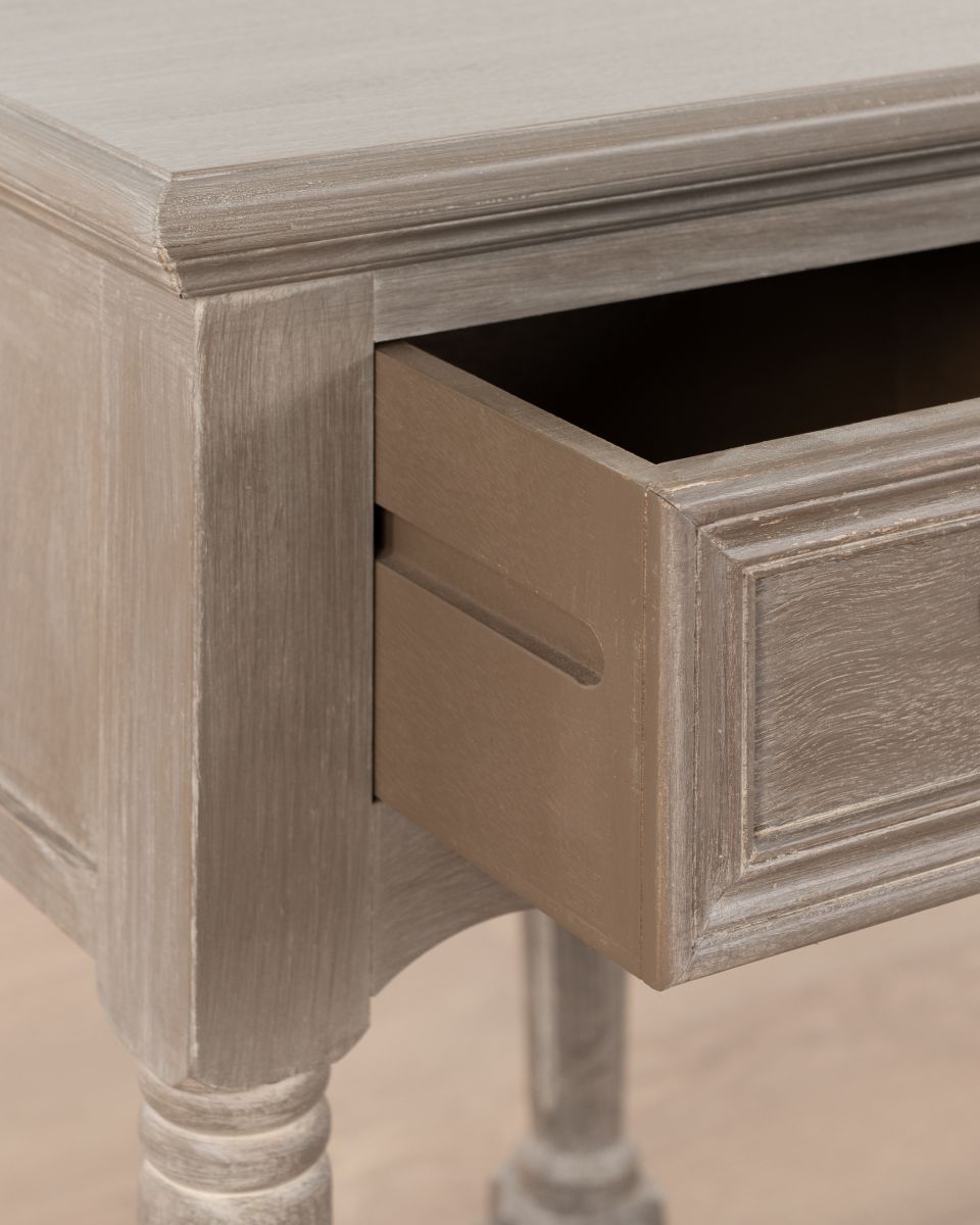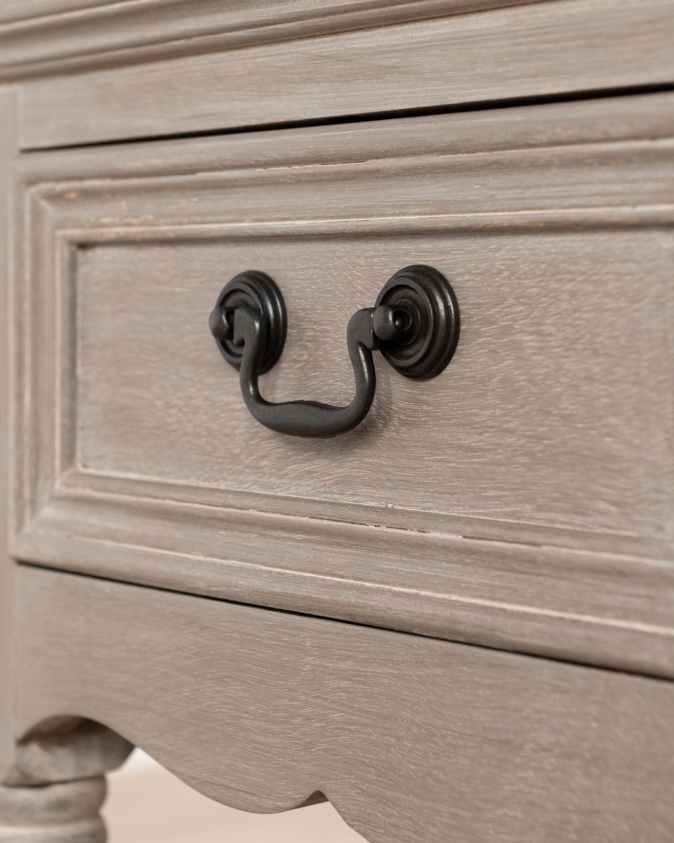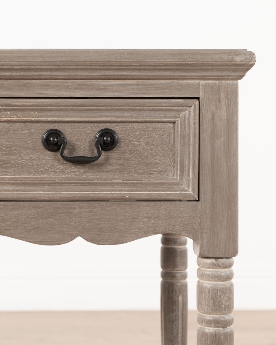 The Sabine Bedside Table from our Maisonette Range combines French elegance with everyday function. Featuring graceful, turned legs and a subtly shaped apron, it's perfect for storing bedside essentials. A versatile option that's thoughtfully scaled for smaller spaces, it's an ideal piece for children's bedrooms and guest rooms.