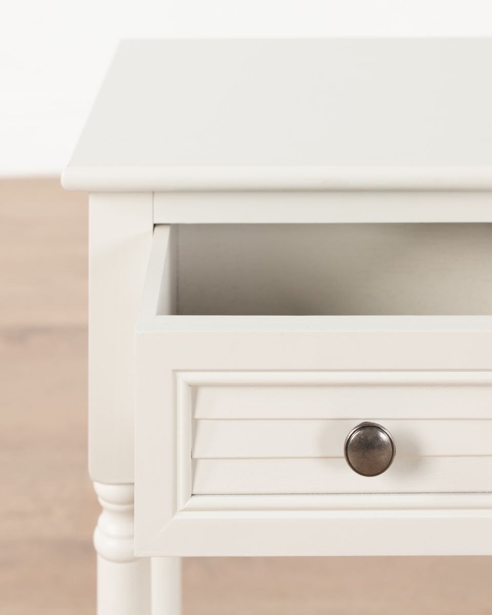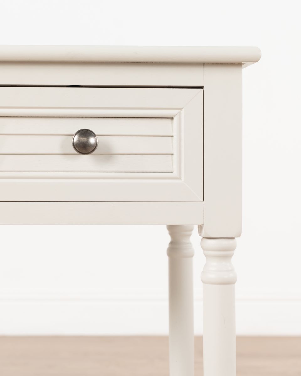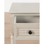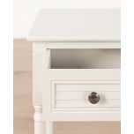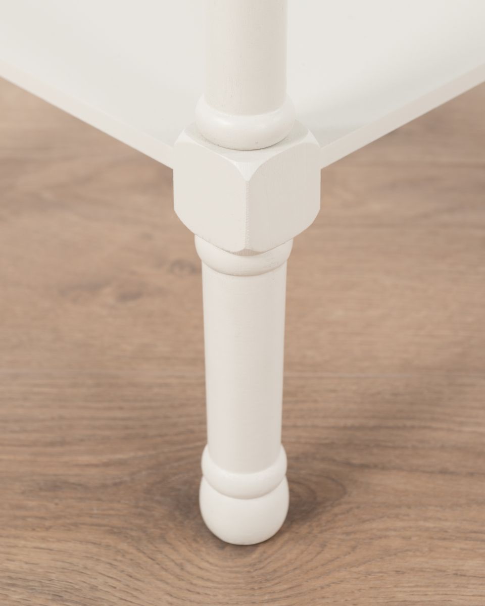 - Features turned legs and a woven lower shelf, it's perfect for storing bedside essentials