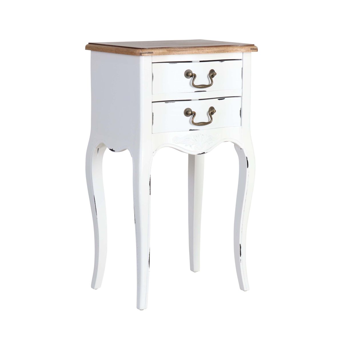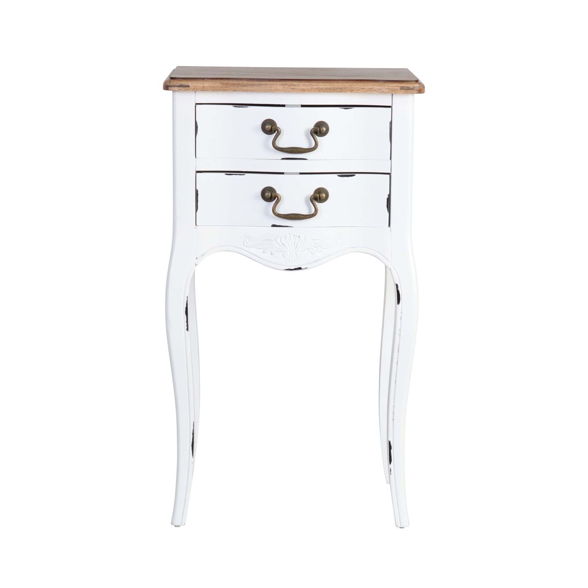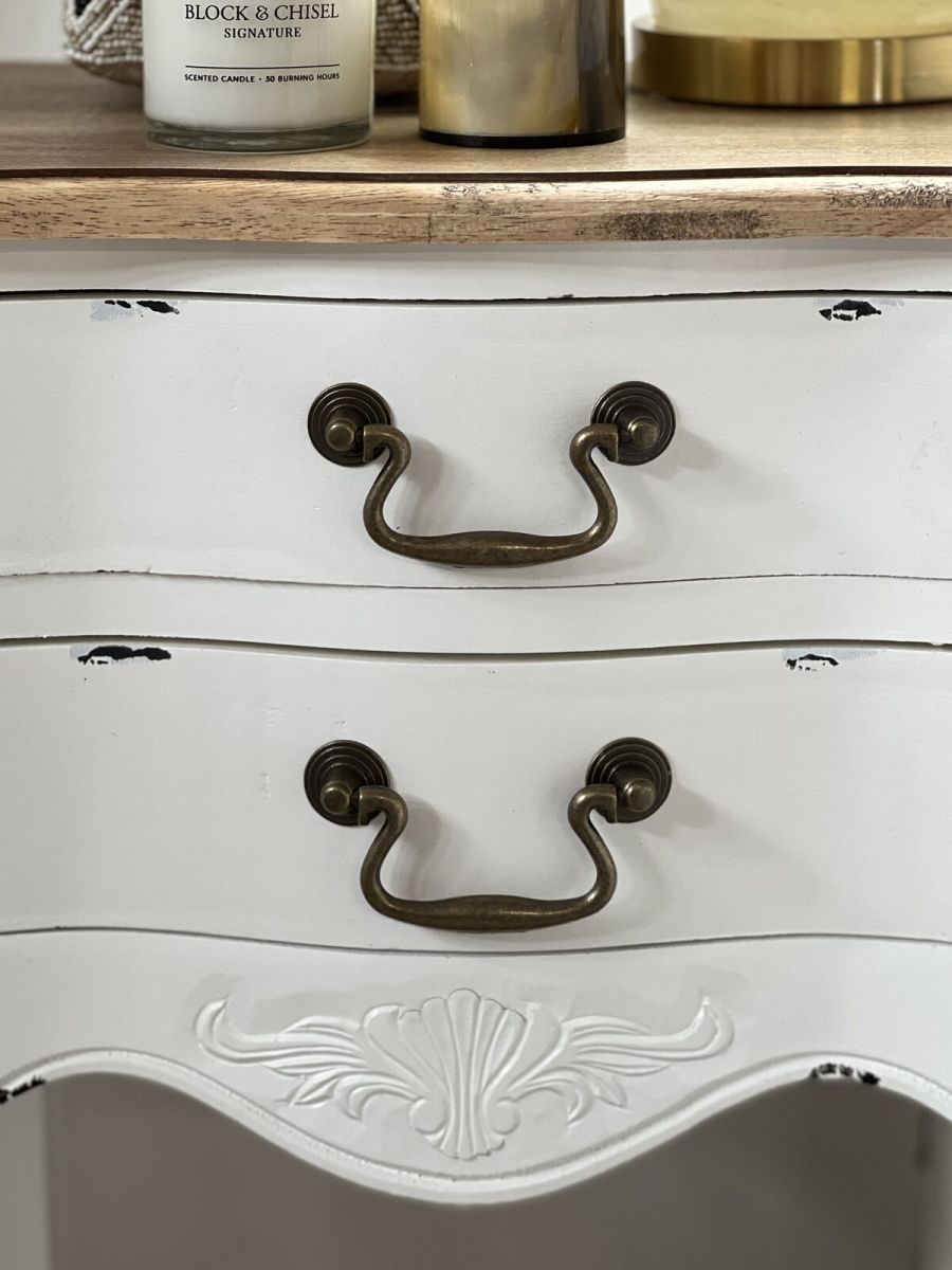 Bring a bit of French country character to your master suite or guest room with the Château Marie bedside table, crafted from Ash veneer and Pine in a distressed white finish.