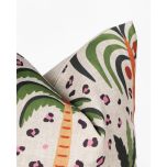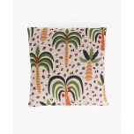 - Features a repeating pattern of stylised palm trees in lush shades of green and golden amber on the front and a neutral back cover