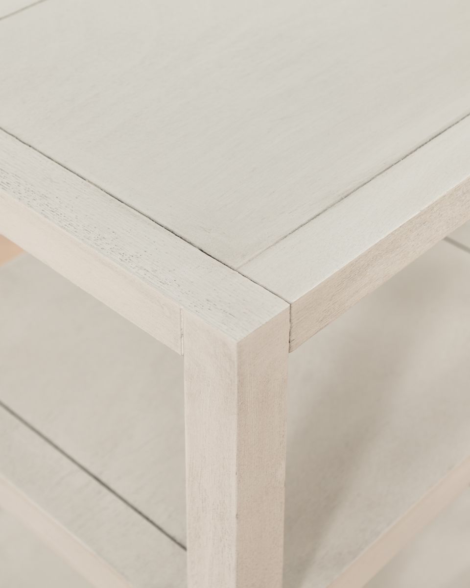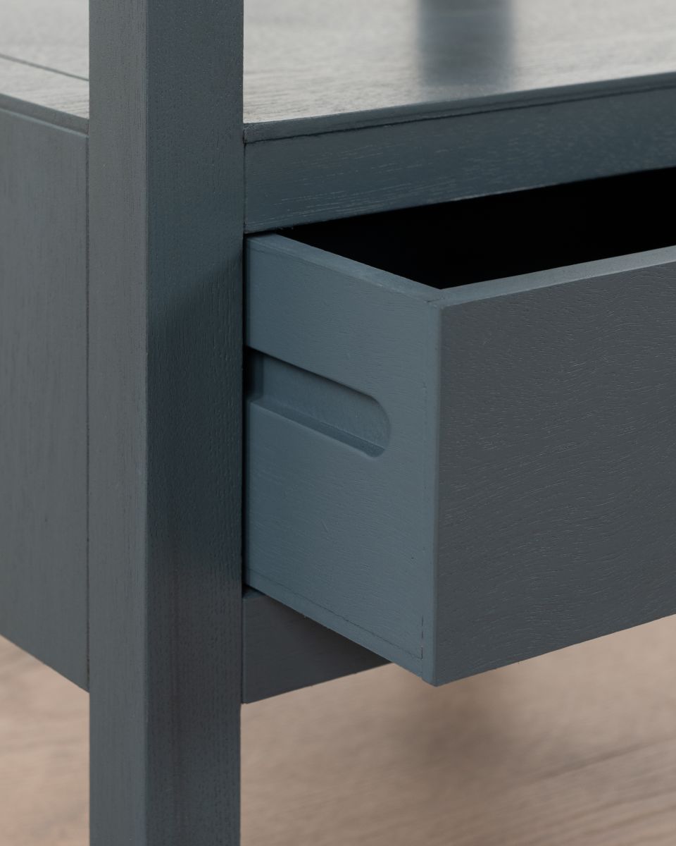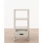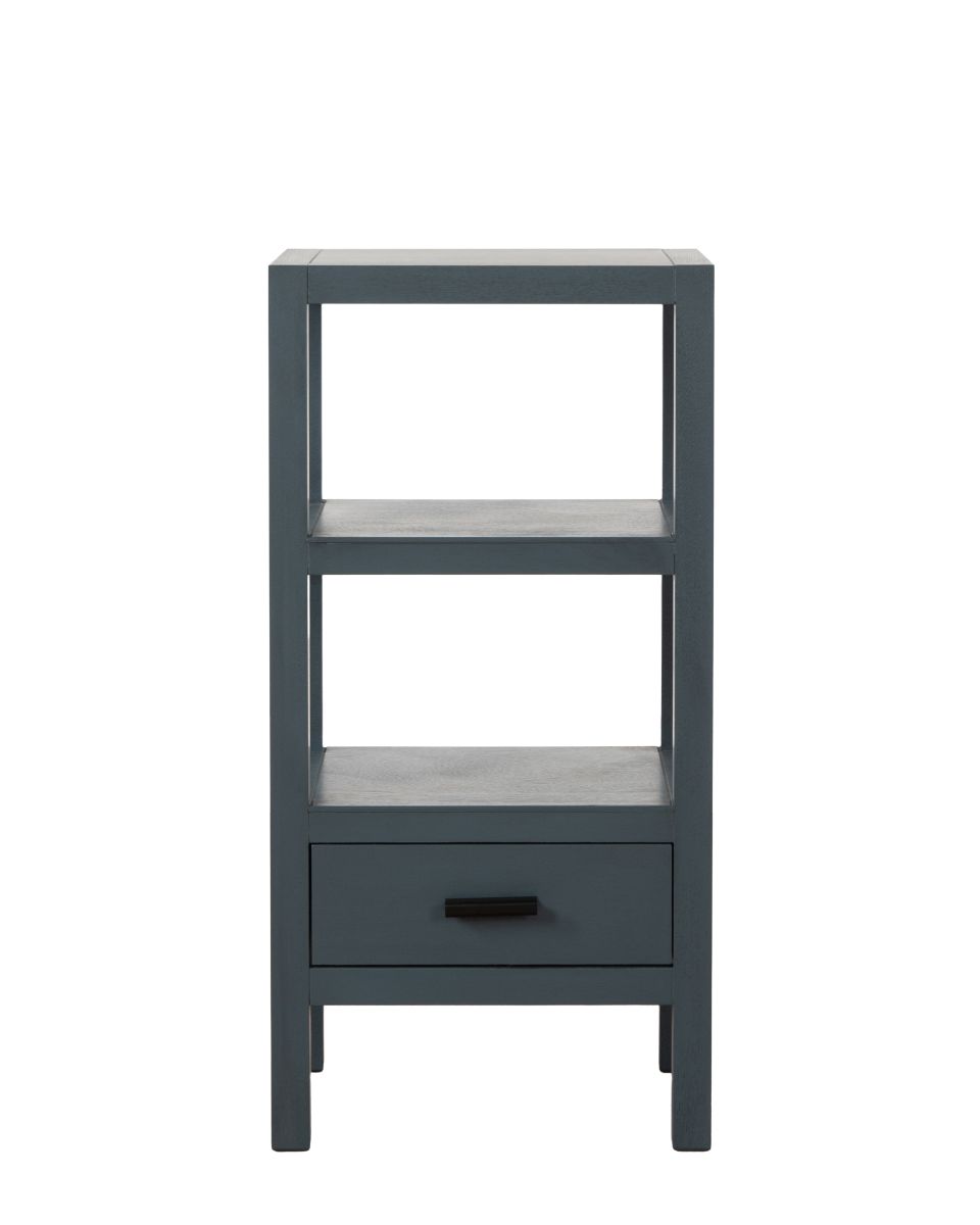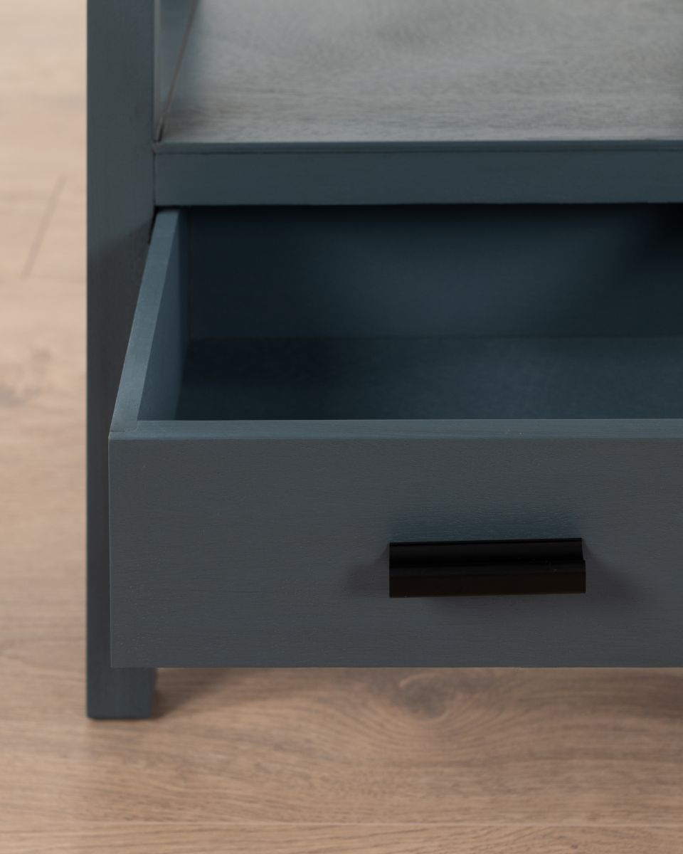 - Features two spacious shelves ideal for décor or bedside essentials and a single lower drawer fitted with a sleek, rectangular metal handle