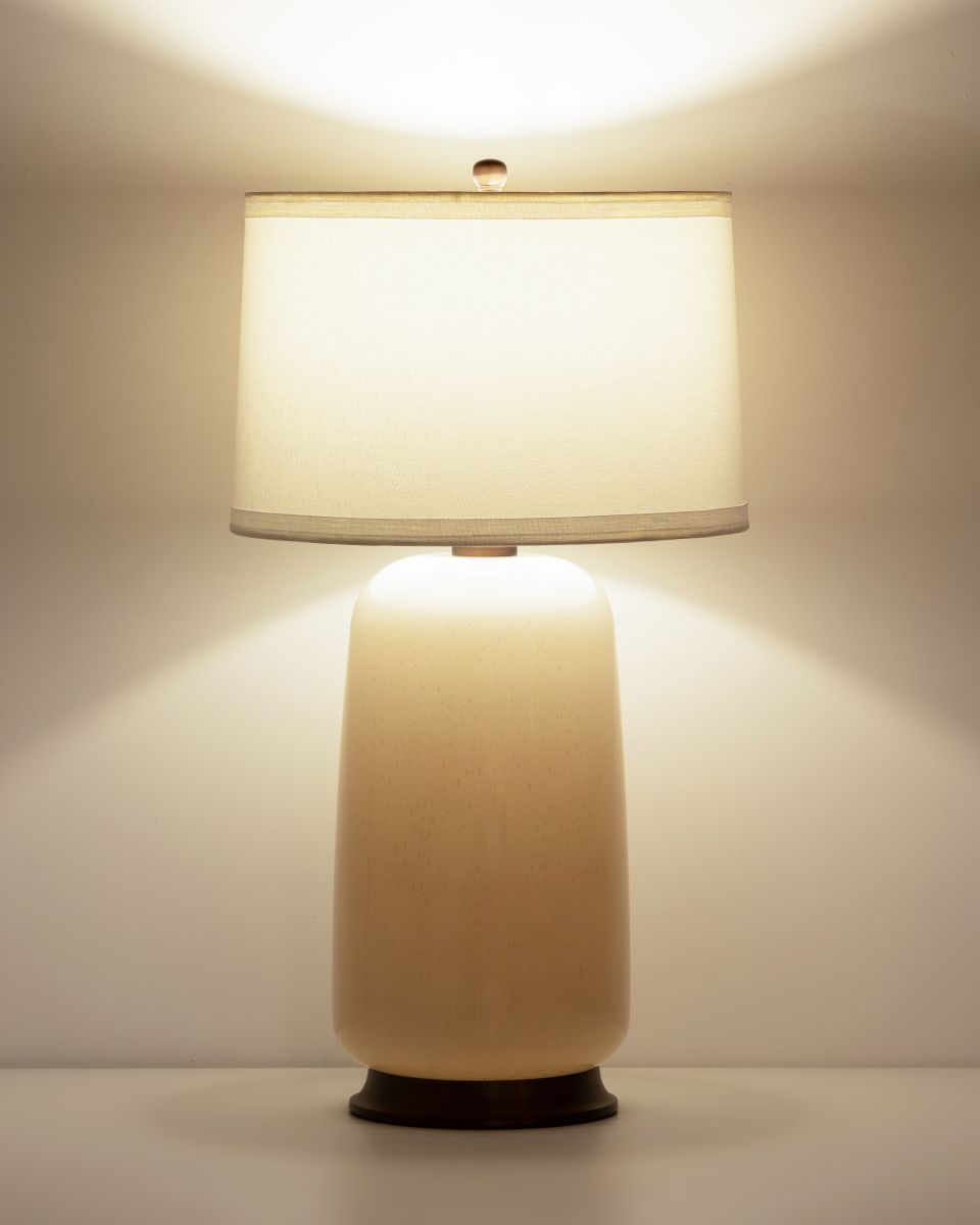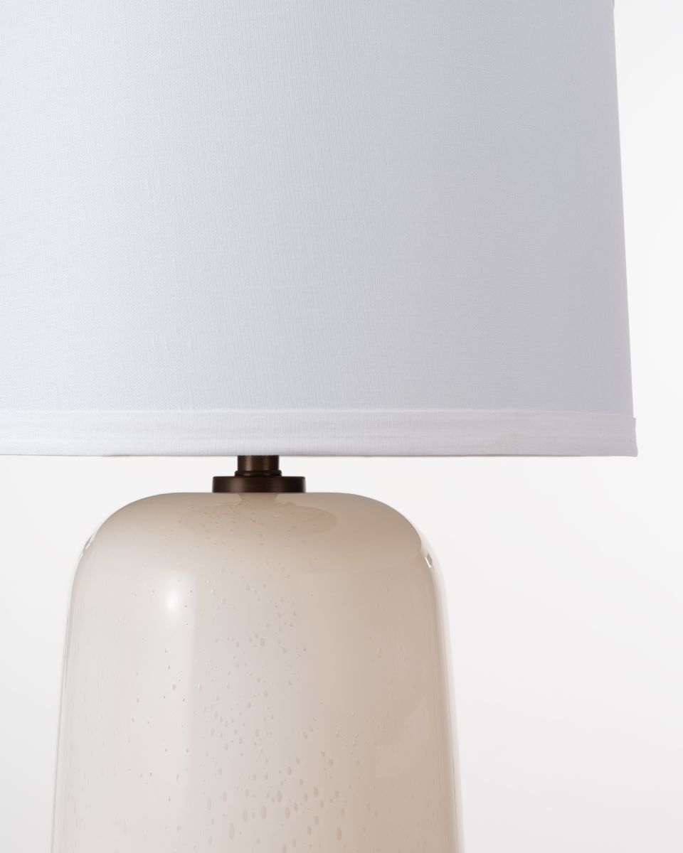 Clean lines and gentle curves define The Montrose Lamp. Its glass base, complemented by subtle metal finishes, offers a contemporary sense of calm. Topped with a pure white linen shade, this lamp delivers soft, balanced light and effortlessly elevates any interior with minimalist charm.