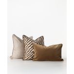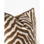The Otavi Earth Cushion is a bold, contemporary twist on a classic zebra print. This bold scatter cushion features an artful striped pattern in a subtle chevron alignment, creating a captivating and refined look. The cover is woven from a premium fabric blend, offering a soft touch, subtle texture, and lasting durability. Finished with a sleek piped edge trim in a viscose-polyester mix, it delivers a polished, tailored feel. Layer it with other patterned or textured cushions to add depth and create a balanced look for your sofa, armchair, or bed arrangement.