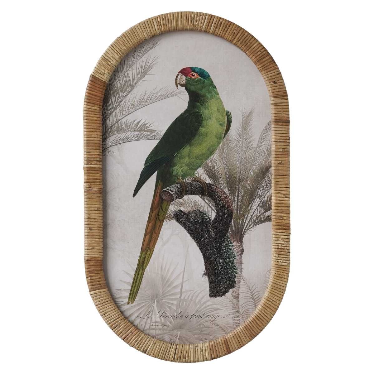 Add a pop of colour and timeless charm to your space with the Parrot Framed Wall Art. Featuring a striking parrot in classic ornithological illustration style, this framed print combines natural elegance with vintage artistry.  Complete with a wooden frame with rattan detailing, it's a bold yet elegant piece that works wonderfully as a standalone piece or as part of a curated gallery wall. Ideal for living areas, hallways, bedrooms or studies.