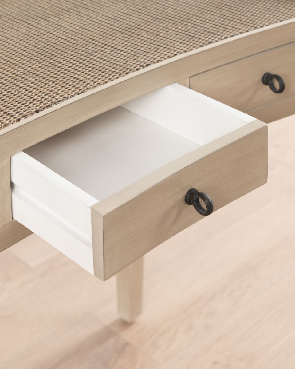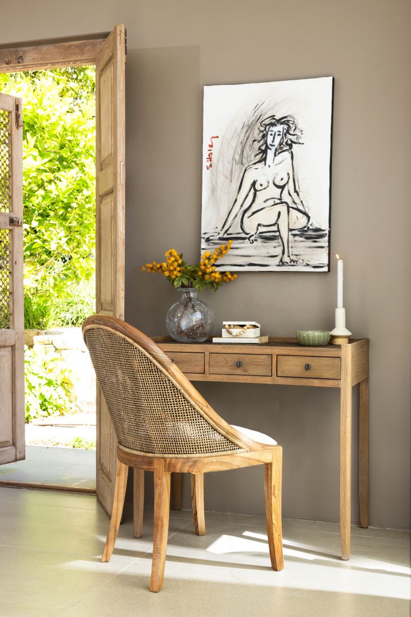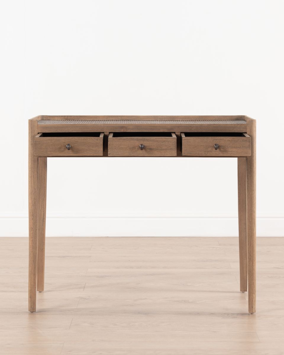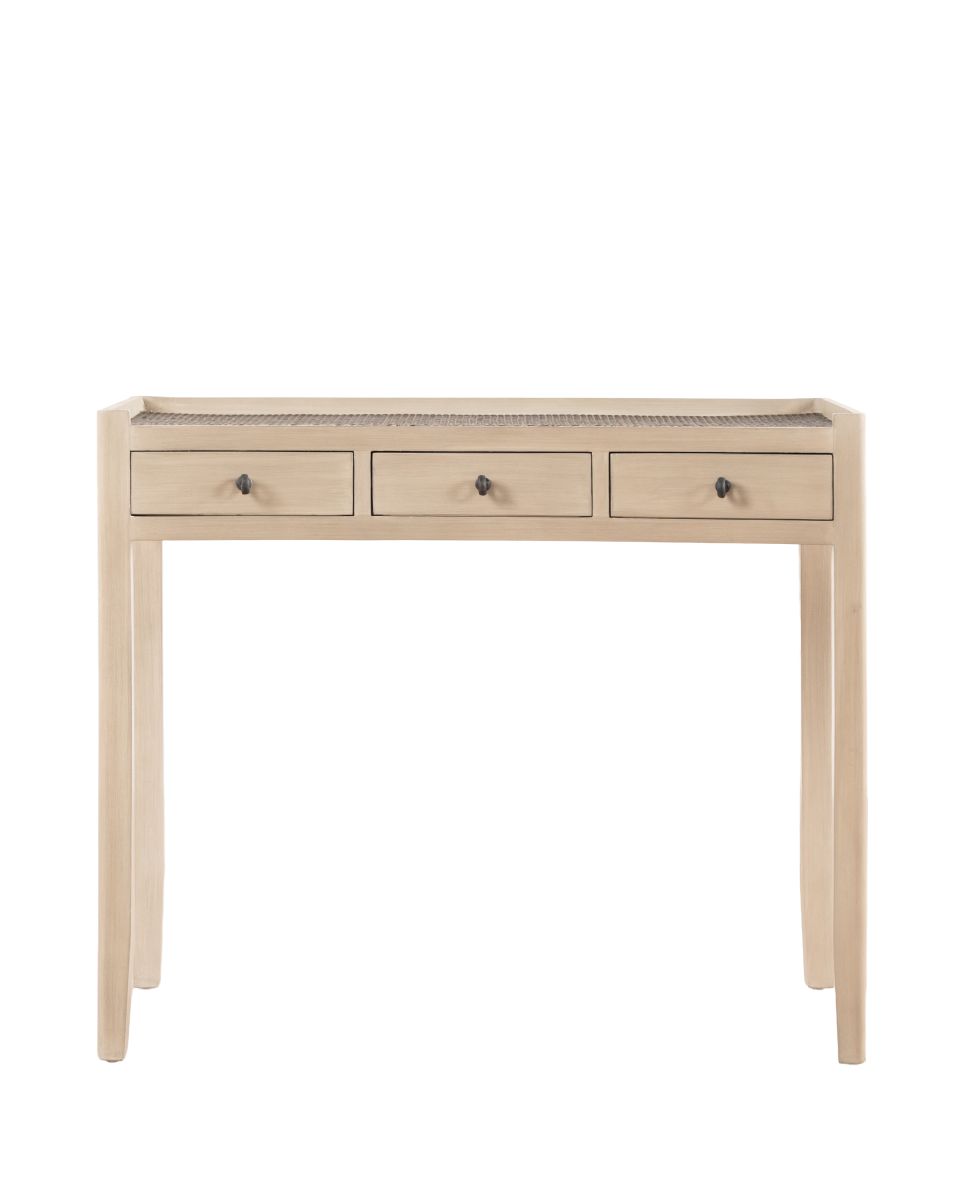 The Plantation writing table from the Villa collection is a versatile piece that blends French classic design with practical elegance. Perfect as a mini dressing table or a quiet bedside companion, it offers just enough space for all your essentials. Whether used as a desk in smaller bedrooms or as an accent piece in guest rooms, this table brings a touch of sophistication to any space. It's painted finish adds a creamy whiteness, ideal for brightening up areas that crave light. Consider placing it in an entrance hall, where its understated charm will greet guests with subtle grace. Style with a sleek mirror or delicate vase to enhance its timeless appeal.