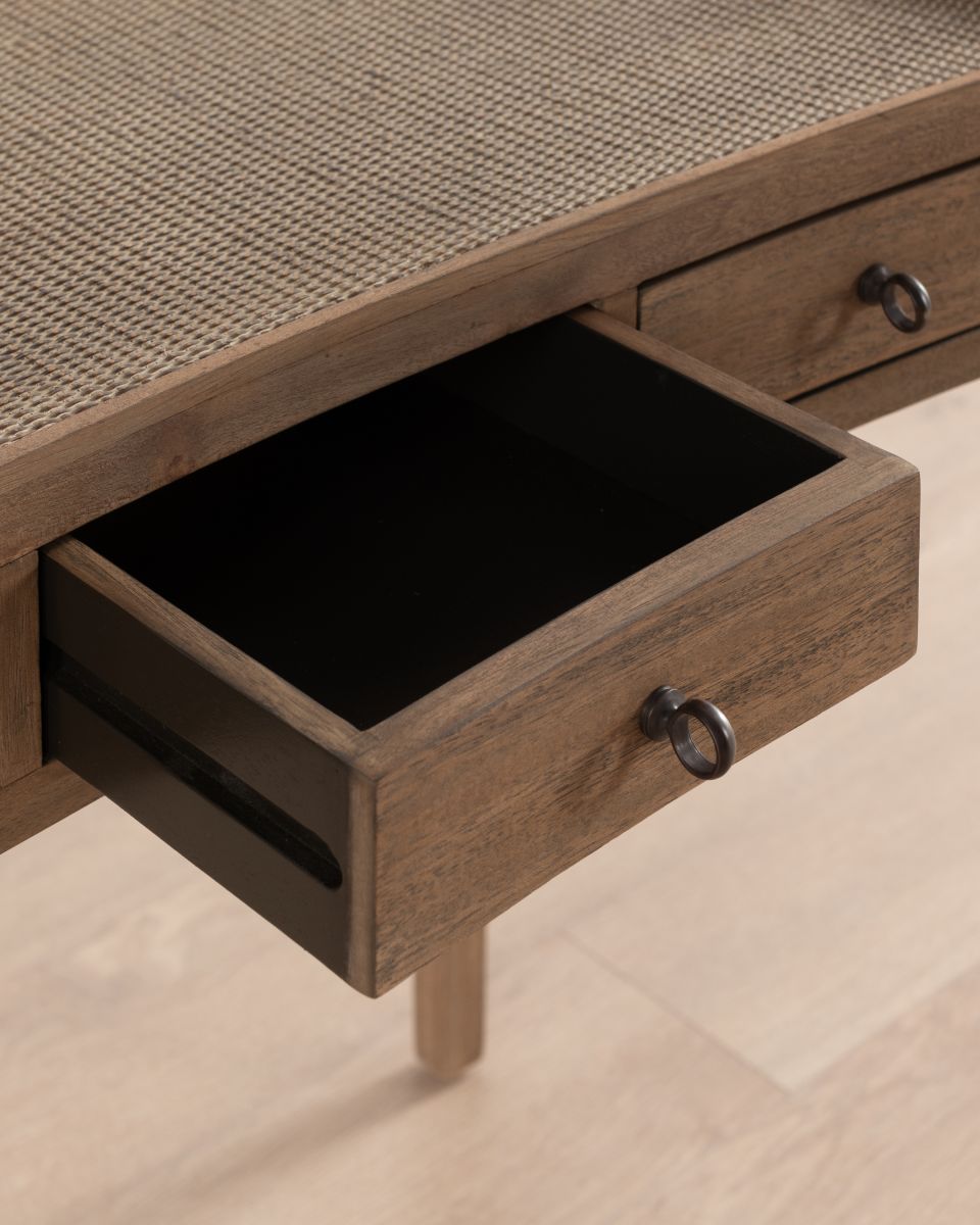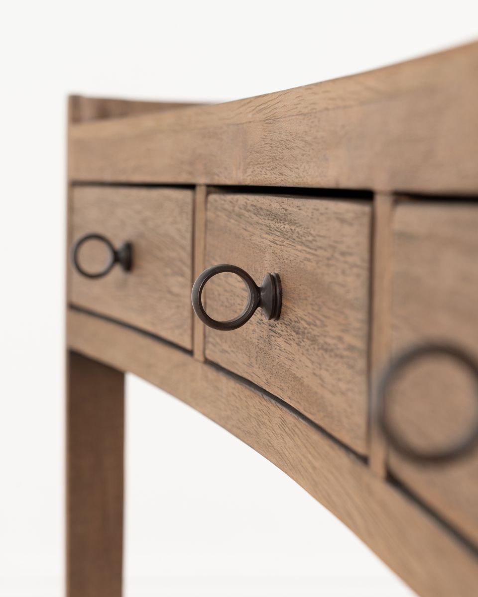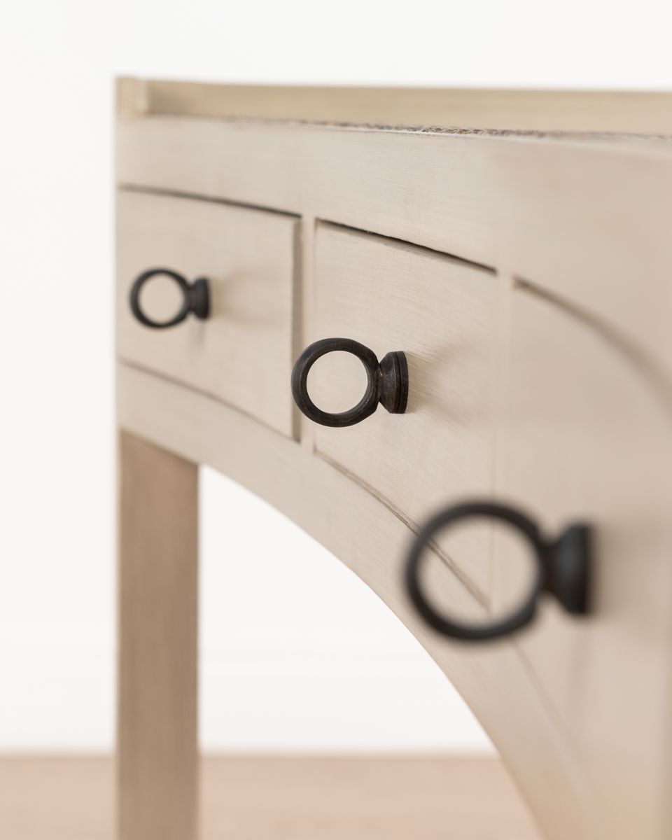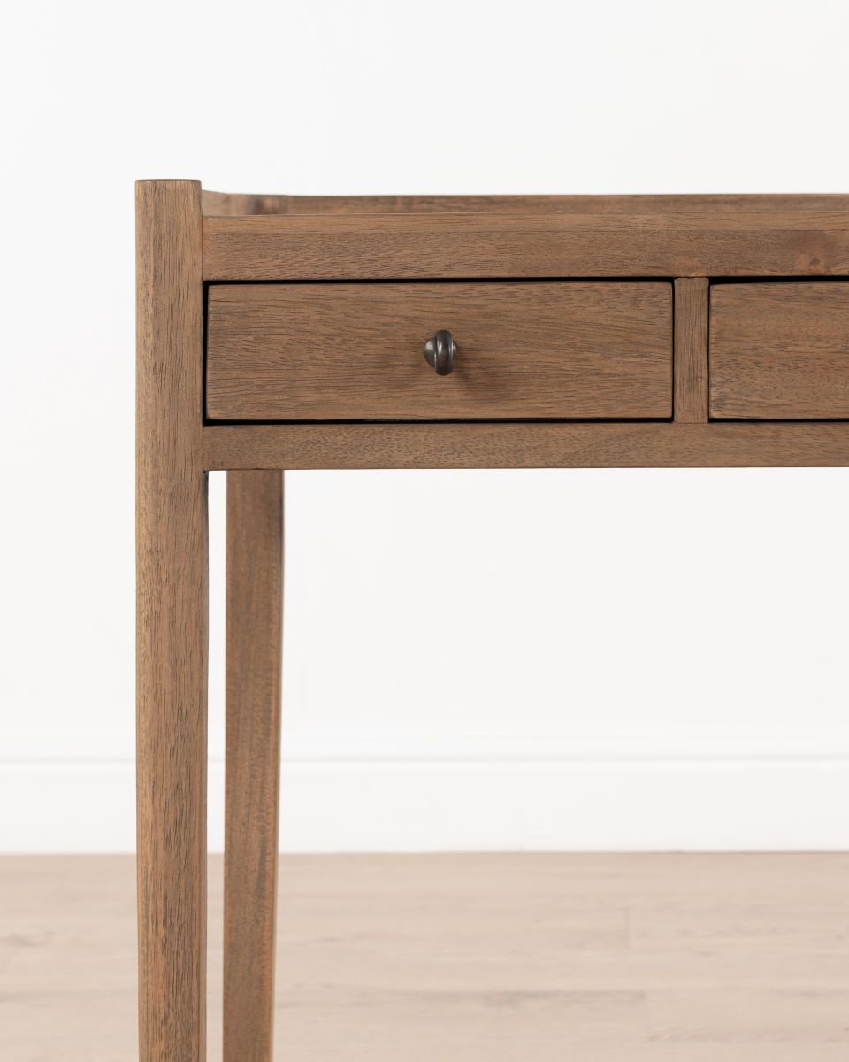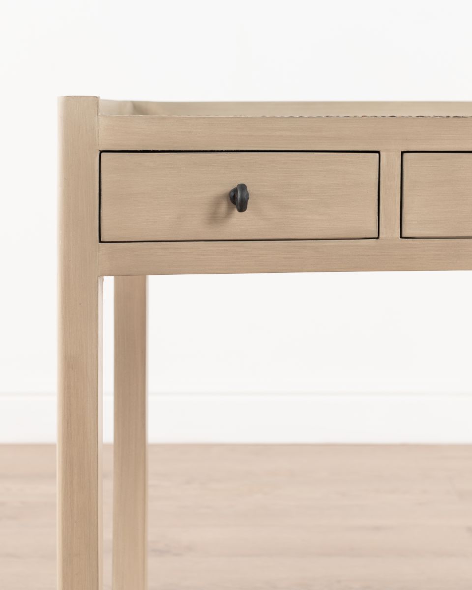 The Plantation writing table from the Villa collection is a versatile piece that blends French classic design with practical elegance. Perfect as a mini dressing table or a quiet bedside companion, it offers just enough space for all your essentials. Whether used as a desk in smaller bedrooms or as an accent piece in guest rooms, this table brings a touch of sophistication to any space. It's painted finish adds a creamy whiteness, ideal for brightening up areas that crave light. Consider placing it in an entrance hall, where its understated charm will greet guests with subtle grace. Style with a sleek mirror or delicate vase to enhance its timeless appeal.