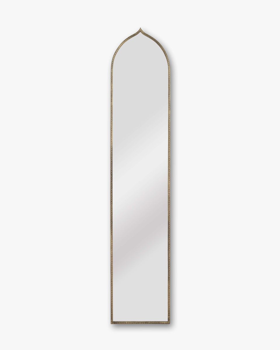 The Rialto Mirror is a statement of graceful design and refined simplicity. Featuring a tall, slender form crowned with a distinctive pointed arch, this piece is inspired by timeless architectural shapes. The textured metal frame is finished in a soft antique tone, adding a sophisticated touch. Perfect for introducing height and light to a space, this mirror’s tall profile makes it ideal for hallways, bedrooms, or dressing areas.