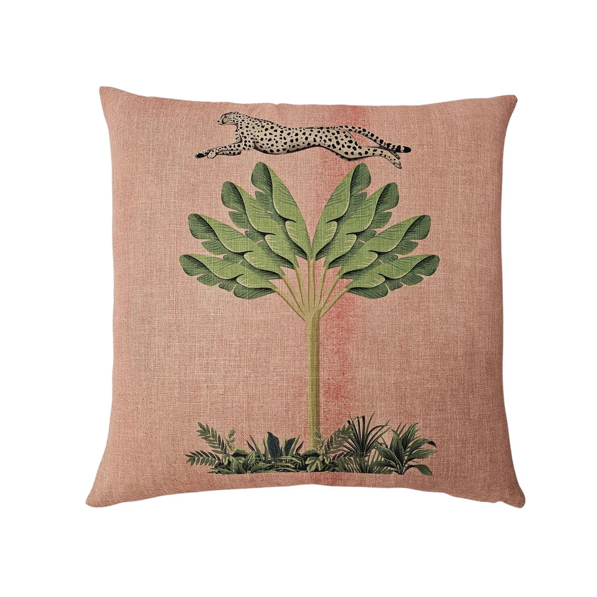 - Features a vibrant, leopard leaping over a palm tree design on the front and a neutral back cover