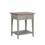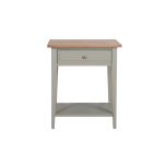 A clean-lined design gives the Shaker pedestal an understated look, while its 1 drawer and lower display shelf lend ample storage space. (Shown here in Weathered Oak with a biscuit base)