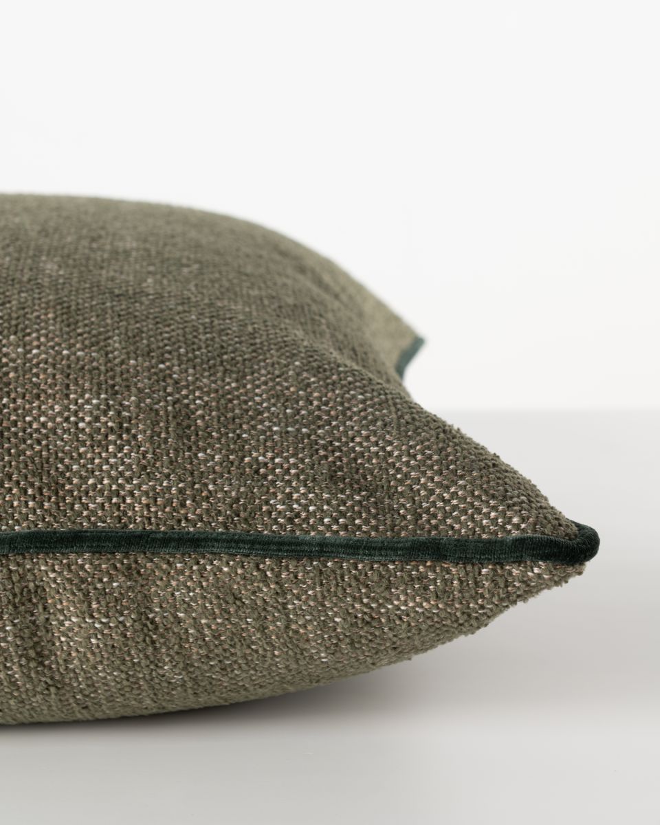 Add a touch of sophisticated comfort to your living space with the Sikara Matcha Cushion. Designed for lasting durability and easy maintenance, this cushion combines practical function with timeless style. Its rich, earthy green tone creates a grounding feeling, while its piped edge trim lends a crisp, tailored finish. Layer it with other patterned or textured cushions to add depth and create a balanced look for your sofa, armchair, or bed arrangement.