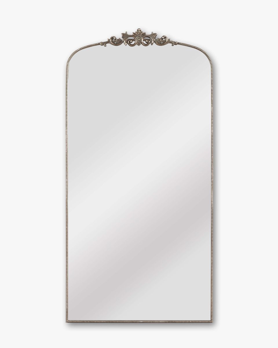 The Silhouette Mirror embodies timeless sophistication with a touch of vintage charm. Featuring a gracefully arched form with a fine, beaded edge and an ornate floral motif, this piece is reminiscent of antique European design. Perfect for introducing height and light to a space, this mirror’s tall profile makes it ideal for hallways, bedrooms, or dressing areas.